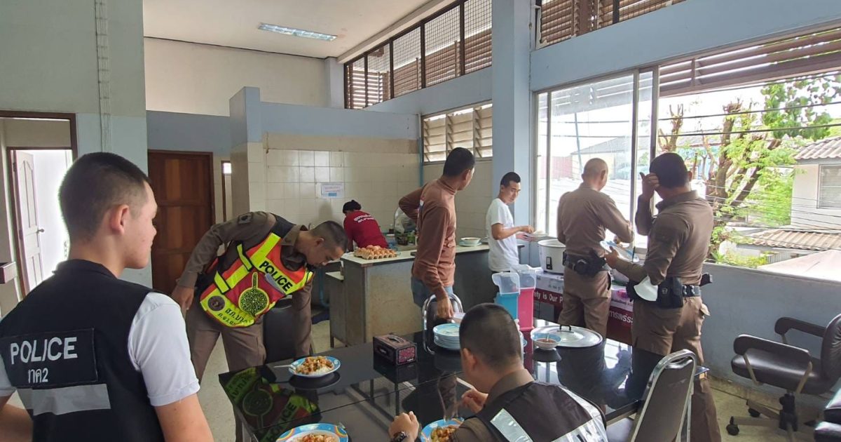 วันนี้ ( 4 ตุลาคม 2566) เวลา 12.00 น. พ.ต.อ.พรชัย กิตติชญาน์ ผกก.สภ.บางคล้า ได้รับการอนุเคราะห์สนับสนุนวัตถุดิบ ไก่สด จาก ไทยฟูดส์ เฟรช มาร์เก็ต โดยได้รับการประสาน สาขาบางคล้า กับผู้จัดการ คุณวิภารักษ์ ประไพชาติ และ นายเอกพันธ์ ตันเจริญ คณะกรรมการ กต.ตร.สภ.บางคล้า โดยมี แม่บ้านสายลม ได้จัดเตรียมพร้อมปรุงจัดทำอาหาร ประจำวันนี้ ได้แก่.- เกงป่าใส่ไก่ + ไข่เจียว มีข้าราชการตำรวจที่ปฏิบัติหน้าที่ ประจำสถานีและนอกสถานี ร่วมรับประทานอาหารโดยพร้อมเพรียงกัน ตามนโยบายการดูแลทุกข์สุขของผู้ใต้บังคับบัญชา ของ ผบก.ภ.จว.ฉะเชิงเทรา ,ผบช.ภ.๒ ,ผบ.ตร. เพื่อเป็นขวัญและกำลังใจแก่ข้าราชการตำรวจ สภ.บางคล้า ต่อไป
