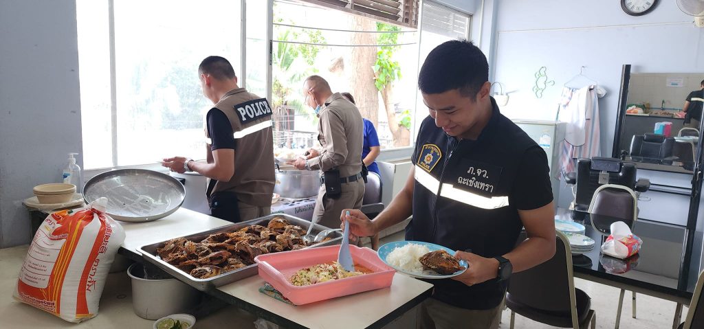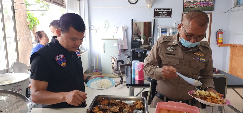 วันที่ 25 ต.ค.2566 เวลา 12.00 น. พ.ต.อ.พรชัย กิตติชญาน์ ผกก.สภ.บางคล้า ได้จัดทำโครงการอาหารกลาวัน ( การดูแลทุกข์สุขของผู้ใต้บังคับบัญชา ) ตามนโยบาย ของ ผบก.ภ.จว.ฉะเชิงเทรา ,ผบช.ภ.๒ ,ผบ.ตร. โดยได้รับการสนับสนุน ปลานิล และ ปลาสวาย จากนายเพ็ชรัตน์ พวงเจริญ เจ้าของแพเพ็ชรัตน์ และ ที่ปรึกษา กต.ตร.สภ.บางคล้า เป็นวัตถุดิบ สำหรับวันนี้ โดยมี ร.ต.ต.อำนวย ด้วงทอง หัวหน้าที่พักสายตรวจปากน้ำ – หัวไทร – บางกระเจ็ด และ แม่บ้านสายลม ได้ประกอบประจำวันนี้ เกงหน่อไม้ใส่ปลาสวาย และ ปลานิลทอด ข้าราชการตำรวจที่ปฏิบัติหน้าที่ ประจำสถานีและนอกสถานี ร่วมรับประทานโดยพร้อมเพรียงกัน
