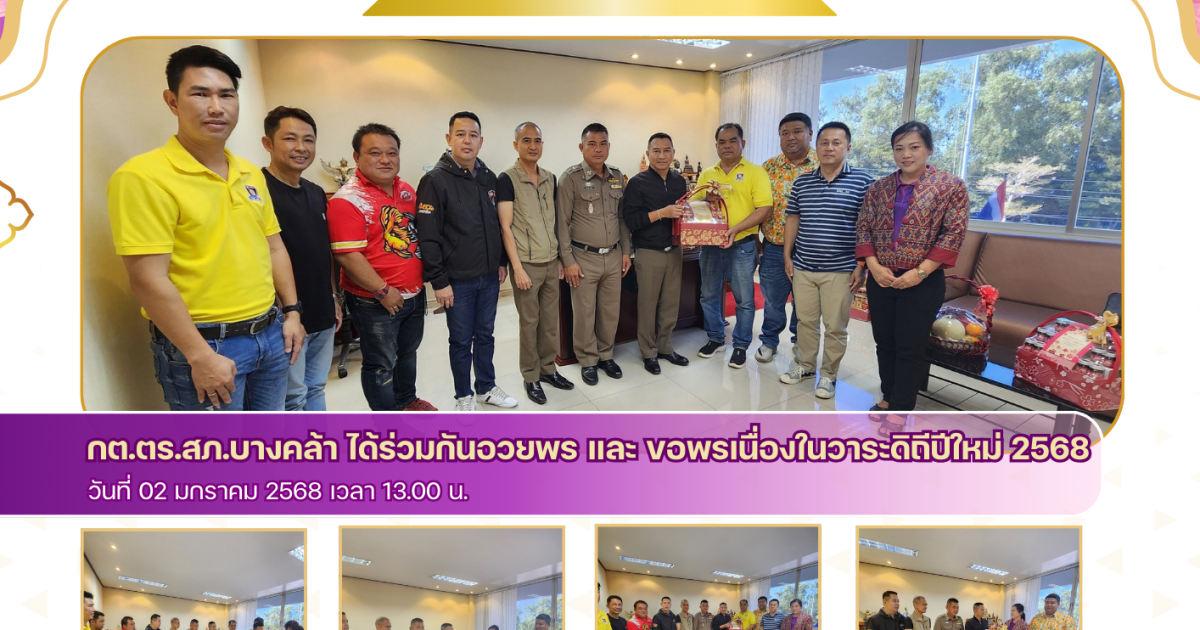 กต.ตร.สภ.บางคล้า ได้ร่วมกันอวยพร และ ขอพรเนื่องในวาระดิถีปีใหม่ 2568 จาก พ.ต.อ.พรชัย กิตติชญาน์ธร ผกก.สภ.บางคล้า 2 มกราคม 2025 โดย admbangkhla / ข่าวกิจกรรม,ข่าวภารกิจผู้บังคับบัญชา,ผลงานคณะกรรมการ กต.ตร. Post Views: 71 วันนี้( 2 มกราคม 2568 ) เวลา 13.00 น. นายสรุชัย โชคชัยอำนวยพร ประธาน กต.ตร.สภ.บางคล้า,นายภัชร์ธนพงศ์ ทรัพย์พิพัทไพศาล รองประธาน กต.ตร.สภ.บางคล้า,นายกิตติเชษฐ สุขบำรุงทรัพย์ ที่ปรึกษา กต.ตร.สภ.บางคล้า,นางสาวน้ำผึ้ง คำสอาด ,นายวีรวัตร์ โพธิ์ศรีชัย,นายภูวดล เจียโหงว , นายสมศักดิ์ ภูมิคง กรรมการ ตร.ตร.สภ.บางคล้า ได้ร่วมกันอวยพร และ ขอพรเนื่องในวาระดิถีปีใหม่ 2568 จาก พ.ต.อ.พรชัย กิตติชญาน์ธร ผกก.สภ.บางคล้า และ พ.ต.ท. จิระพงษ์ รอดเงิน รอง ผกก.ป.สภ.บางคล้า,พ.ต.ท.วฤทธ์ ถาวโรฤทธิ์ รอง ผกก.กลุ่มงานสอบสวนฯ ช่วยราชการ สภ.บางคล้า,พ.ต.ท.พชรธัช สมานกิตติธร สว.สส.สภ.บางคล้า
