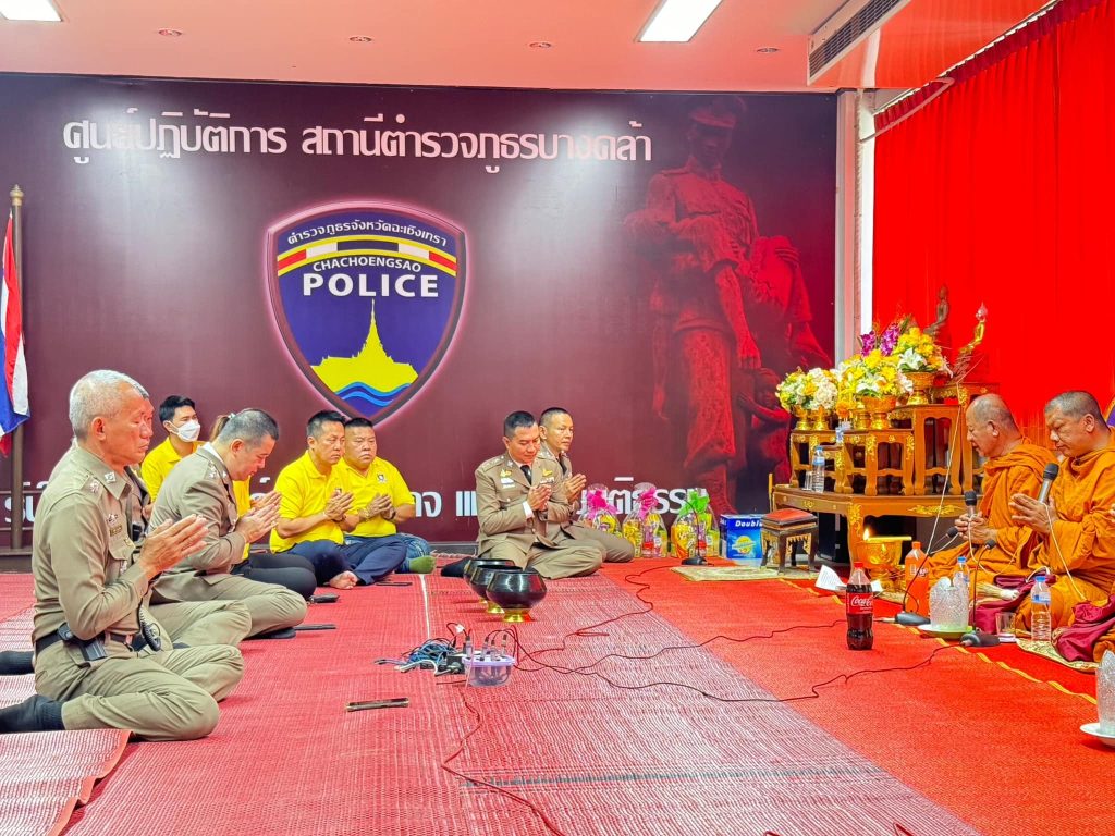 วันที่ 17 ตุลาคม 2566 เวลา 09.00 น. พ.ต.อ.พรชัย กิตติชญาน์ธร ผกก.สภ.บางคล้า,พ.ต.ท.สมศักดิ์ อินสุข รอง ผกก.ป สภ.บางคล้า,พ.ต.ท.เลอศักดิ์ มั่นสมบูรณ์ สวป.ฯปรท.สว.อก.สภ.บางคล้า,พ.ต.ท.พชรธัช สมานกิตติธร สว.สส.สภ.บางคล้า,พ.ต.ต.ชูศักดิ์ เอี่ยมนิรันดร์ สว.อกฯปรท.สวป.สภ.บางคล้า พร้อมข้าราชการตำรวจ ชั้นสัญญาบัตร จำนวน 26 นาย ข้าราชการตำรวจชั้นประทวน จำนวน 34 นาย และ นายสุรชัย โชคชัยอำนวยพร ประธาน กต.ตร.สภ.บางคล้า,นายภัชร์ธนพงศ์ ทรัพย์พิทัพัทไพศาล รอง ประธาน กต.ตร.ฯ,นายทวี ยาตะพงศ์ กรรมการ กต.ตร.ฯ,นายเอกพันธ์ ตันเจริญ กรรมการ กต.ตร.ฯ,น.ส.น้ำผึ้ง คำสอาด กรรมการ กต.ตร.ฯ,นายภูวดล เจียโหงว คณะกรรมการ กต.ตร.ฯ,นายเอกชัย สุดนุช คณะกรรมการ กต.ตร.ฯ ร่วมกิจกรรมวันสถาปนาสำนักงานตำรวจแห่งชาติ ประจำปี 2566 โดยมีพิธีดังนี้.-