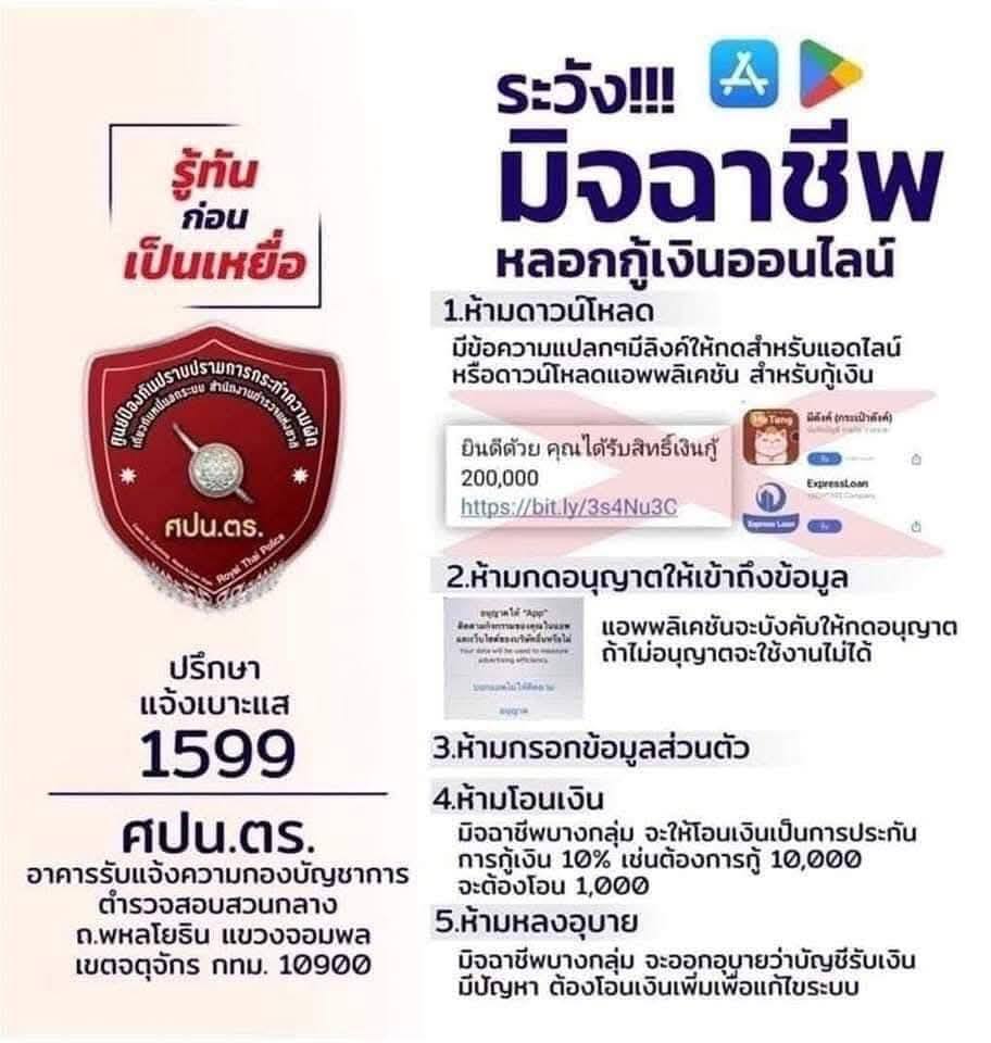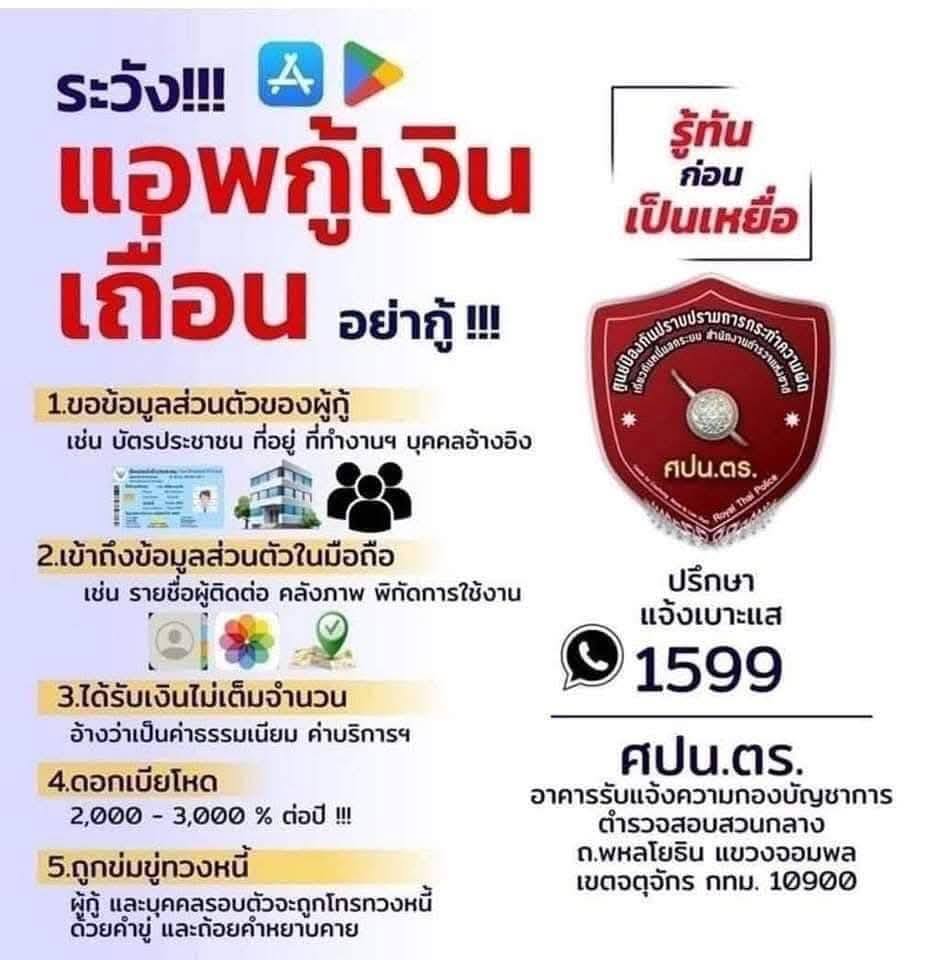 เพื่อหลีกเลี่ยงการตกเป็นเหยื่อของการกู้เงินนอกระบบหรือมิจฉาชีพ ควรระมัดระวังในการให้ข้อมูลส่วนตัว ไม่ดาวน์โหลดแอปพลิเคชันหรือให้สิทธิ์เข้าถึงข้อมูลโดยไม่จำเป็น และเก็บหลักฐานสำคัญไว้เสมอ หากสงสัยหรือเกิดปัญหา ให้รีบแจ้งเจ้าหน้าที่ตำรวจหรือหน่วยงานที่เกี่ยวข้องโดยเร็ว