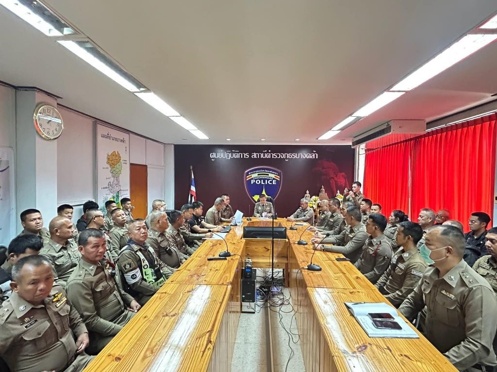 ข้าราชการตำรวจ สภ.บางคล้า เข้าร่วมพิธีต้อนรับ พ.ต.อ.สุมิตร พรมตอง ผกก.สภ.บางคล้า ที่ได้รับการแต่งตั้งให้ดำรงตำแหน่งใหม่ 6 มีนาคม 2025 โดย admbangkhla / ข่าวกิจกรรม,ข่าวภารกิจผู้บังคับบัญชา Post Views: 250 วันพฤหัสบดีที่ 6 มีนาคม 2568 เวลา 09.00 น.-14.00 น. พ.ต.อ.สุมิตร พรมตอง ผกก.สภ.บางคล้า, พ.ต.ท.จิระพงษ์ รอดเงิน รอง ผกก.ป.สภ.บางคล้า, พ.ต.ท.วฤทธิ์ ถาวโรฤทธิ์ รอง ผกก.(กลุ่มงานสอบสวน)ฯช่วยราชการ สภ.บางคล้า, พ.ต.ท.เอกภพ ธรรมาธิกุล รอง ผกก.สส.สภ.บางคล้า, พ.ต.ท.เดชฤทธิ์ ศรีคชา สว.(หัวหน้างานคดี)สภ.บางคล้า, พ.ต.ท.อลงกรณ์ ผาภา สว.(สอบสวน)สภ.บางคล้า, พ.ต.ท.เลอศักดิ์ มั่นสมบูรณ์ สว.อก.สภ.บางคล้า, พ.ต.ท.ชูศักดิ์ เอี่ยมนิรันดร์ สวป.สภ.บางคล้า พร้อมข้าราชการตำรวจ สภ.บางคล้าเข้าร่วมพิธีต้อนรับ พ.ต.อ.สุมิตร พรมตอง ผกก.สภ.บางคล้า ที่ได้รับการแต่งตั้งให้ดำรงตำแหน่งใหม่ สว.อก.ฯ ได้แนะนำผู้บังคับบัญชาระดับ รอง ผกก.-สว. แนะนำพื้นที่ในรับผิดชอบของ สภ.บางคล้า และ ผกก.สภ.บางคล้า ได้มอบนโยบายการปฏิบัติราชการแก่ข้าราชการตำรวจ