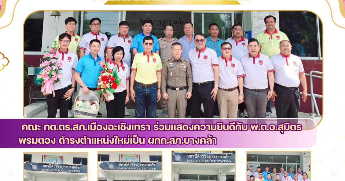 คณะ กต.ตร.สภ.เมืองฉะเชิงเทรา ร่วมแสดงความยินดีกับ พ.ต.อ.สุมิตร พรมตอง อดีต ผกก.สภ.บางน้ำเปรี้ยว ดำรงตำแหน่งใหม่เป็น ผกก.สภ.บางคล้า 10 มีนาคม 2025 โดย admbangkhla / ข่าวภารกิจผู้บังคับบัญชา Post Views: 174 วันนี้ จันทร์ที่ 10 มี.ค.68 เวลา 13:30 น.คณะ กต.ตร.สภ.เมืองฉะเชิงเทรา ร่วมแสดงความยินดีกับ พ.ต.อ.สุมิตร พรมตอง อดีต ผกก.สภ.บางน้ำเปรี้ยว ดำรงตำแหน่งใหม่เป็น ผกก.สภ.บางคล้า ในปัจจุบัน