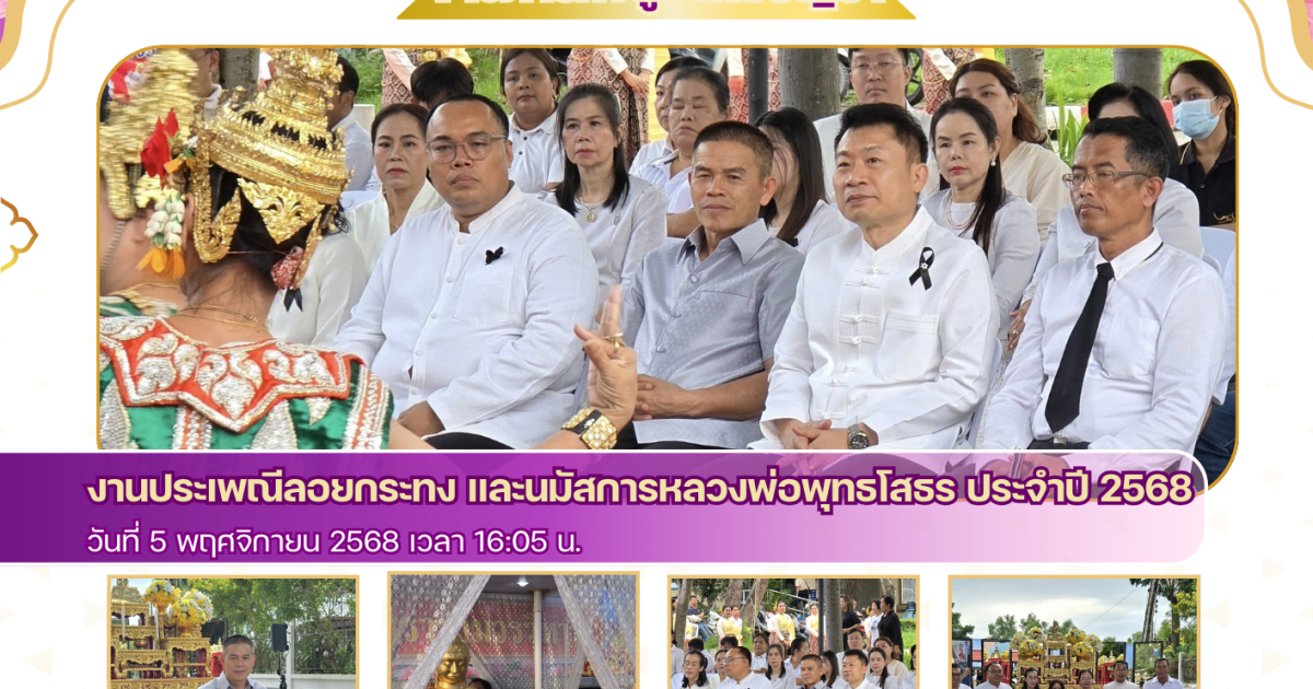 งานประเพณีลอยกระทง และนมัสการหลวงพ่อพุทธโสธร ประจำปี 2568 5 พฤศจิกายน 2025 โดย admbangkhla / ข่าวกิจกรรม,ข่าวภารกิจผู้บังคับบัญชา Post Views: 208 วันที่ 5 พ.ย.68 เวลา 16.05 น. - พ.ต.อ.สุมิตร พรมตอง ผกก.สภ.บางคล้า, - พ.ต.ท.เลอศักดิ์ มั่นสมบูรณ์ สว.อก.สภ.บางคล้า, - พ.ต.ท.ชูศักดิ์ เอี่ยมนิรันดร์ สวป.สภ.บางคล้า พร้อมข้าราชการตำรวจ สภ.บางคล้า ร่วมงานประเพณีลอยกระทง และนมัสการหลวงพ่อพุทธโสธร ประจำปี 2568 ณ บริเวณหน้าที่ว่าการอำเภอบางคล้า โดยมี นายเอกราช กฤตยพงษ์ นายอำเภอบางคล้า เป็นประธานในพิธี, พร้อมด้วยหัวหน้าส่วนราชการ/องค์การปกครองส่วนถ้องถิ่น/ภาคเอกชน ร่วมพิธีฯ ดังกล่าว โดยพร้อมเพรียงกัน