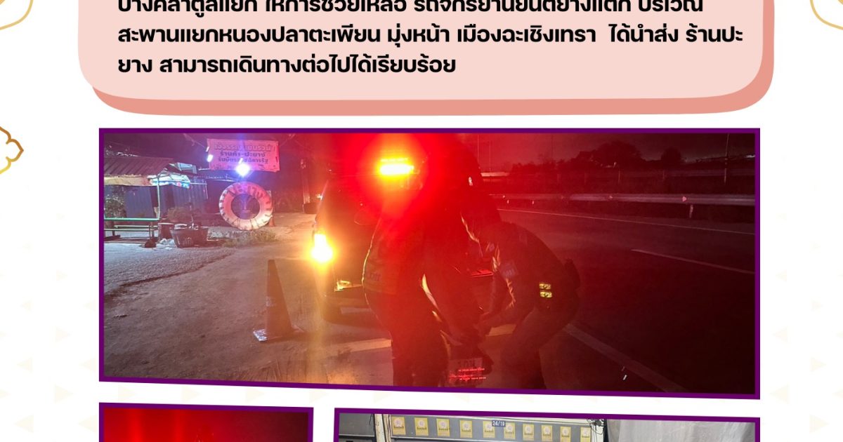 ช่วยเหลือ รถจักรยานยนต์ยางแตก บริเวณสะพานแยกหนองปลาตะเพียน 9 กันยายน 2025 โดย admbangkhla / ผลงานแต่ละงาน,งานจราจร,ช่วยเหลือบริการประชาชน,ผลงานแต่ละงาน Post Views: 238 วันที่ 9 กันยายน 2568 เวลาประมาณ 23.00 น. บางคล้าตู้สี่แยก ให้การช่วยเหลือ รถจักรยานยนต์ยางแตก บริเวณสะพานแยกหนองปลาตะเพียน มุ่งหน้า เมืองฉะเชิงเทรา ได้นำส่ง ร้านปะยาง สามารถเดินทางต่อไปได้เรียบร้อย