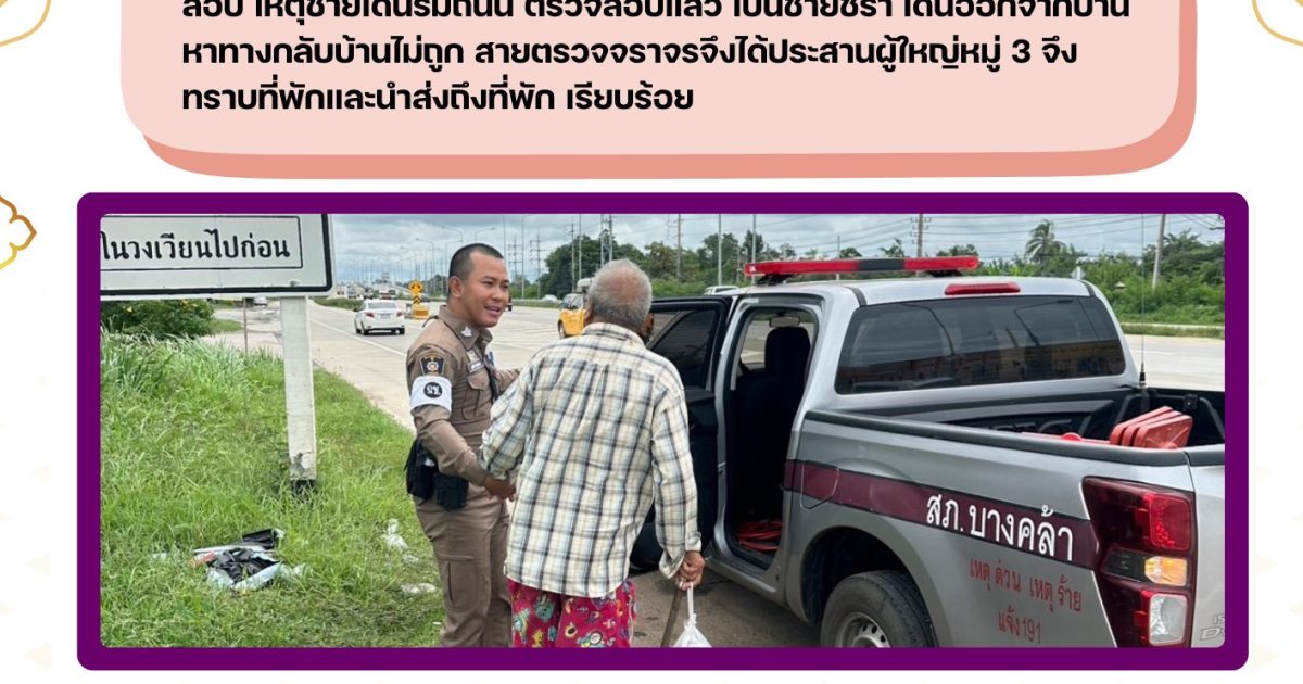 ตรวจสอบ เหตุชายเดินริมถนน นำส่งถึงที่พัก เรียบร้อย 8 กันยายน 2025 โดย admbangkhla / ผลงานแต่ละงาน,งานป้องกันปราบปราม,ช่วยเหลือบริการประชาชน,ผลงานแต่ละงาน,ไม่มีหมวดหมู่ Post Views: 230 8 กันยายน 2568 เวลาประมาณ 11.00 น. สายตรวจจราจร ตรวจสอบ เหตุชายเดินริมถนน ตรวจสอบแล้ว เป็นชายชรา เดินออกจากบ้าน หาทางกลับบ้านไม่ถูก สายตรวจจราจรจึงได้ประสานผู้ใหญ่หมู่ 3 จึงทราบที่พักและนำส่งถึงที่พัก เรียบร้อย