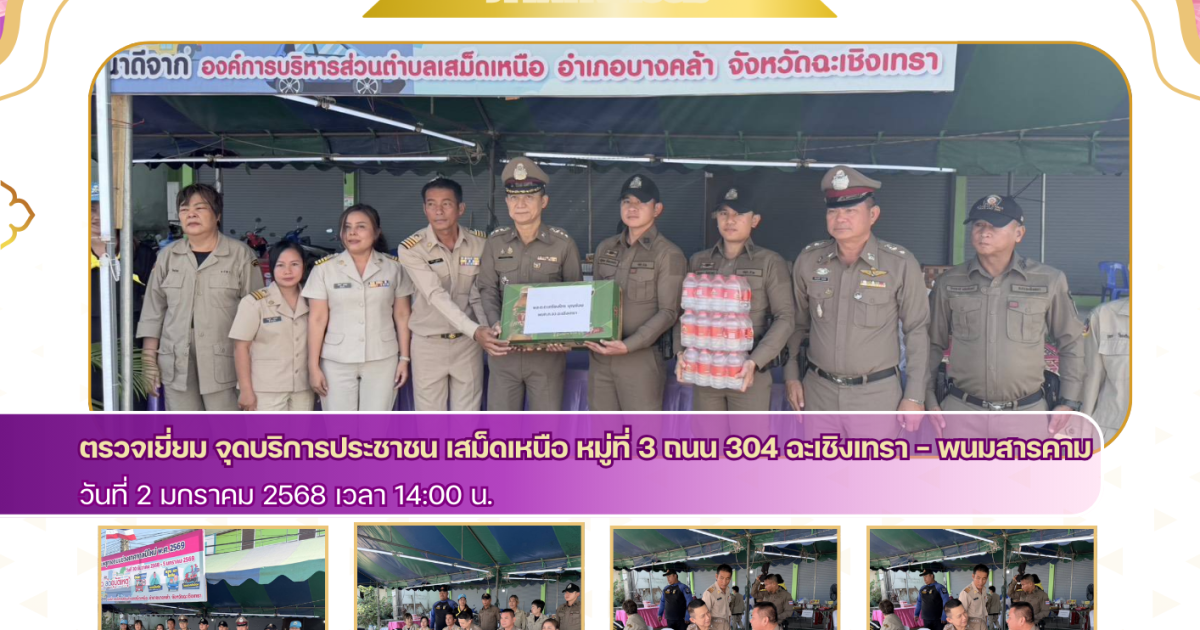 ได้เดินทางมาตรวจเยี่ยม จุดบริการประชาชน หน้าวัดเสม็ดเหนือ หมู่ที่ 3 ถนน 304 ฉะเชิงเทรา - พนมสารคาม พื้นที่รับผิดชอบของสภ.บางคล้า