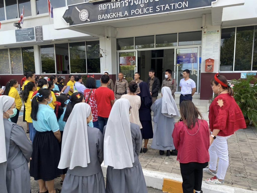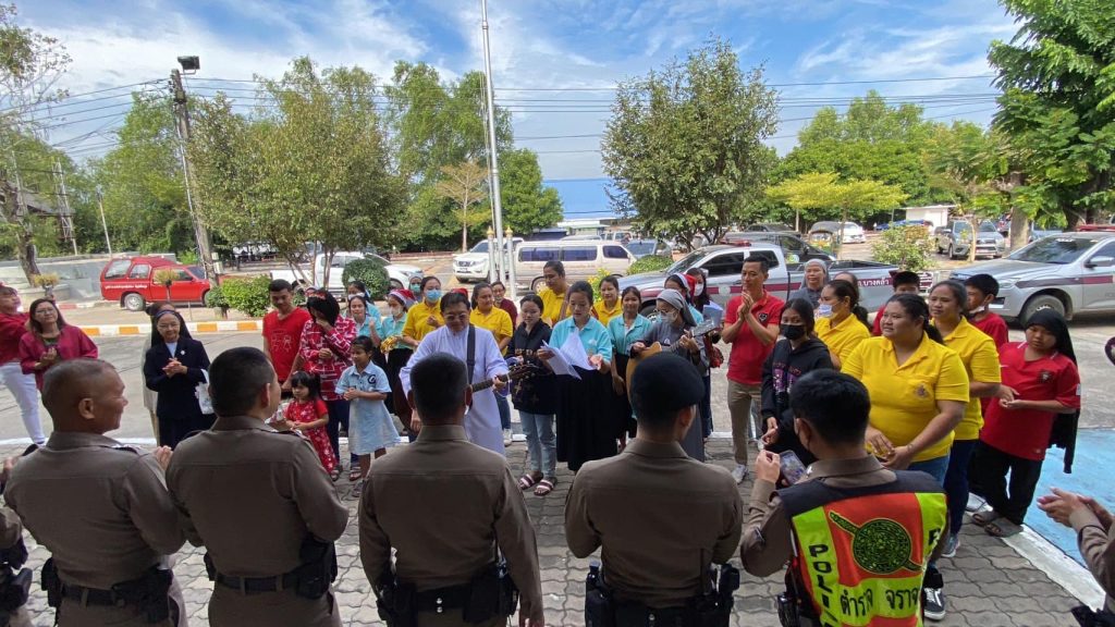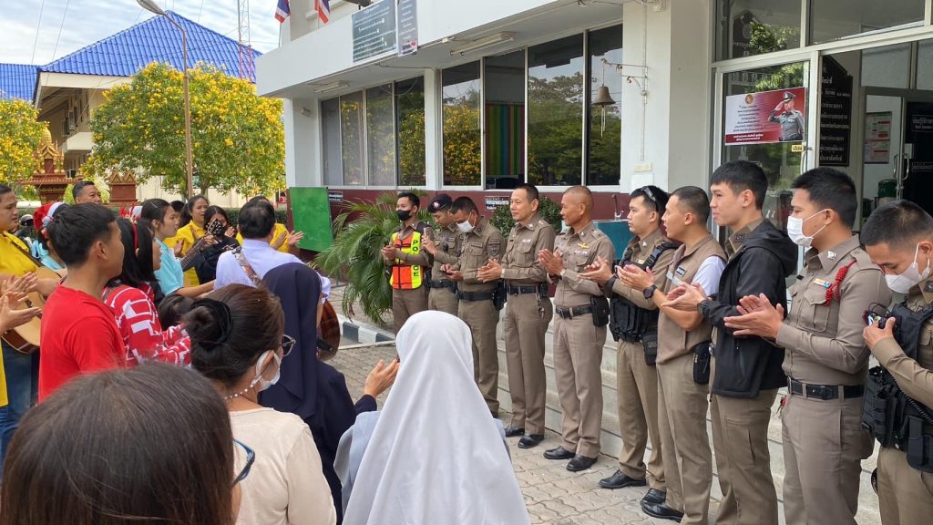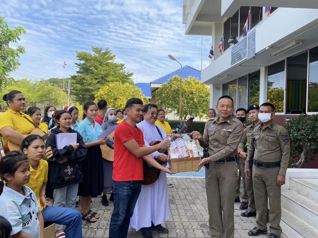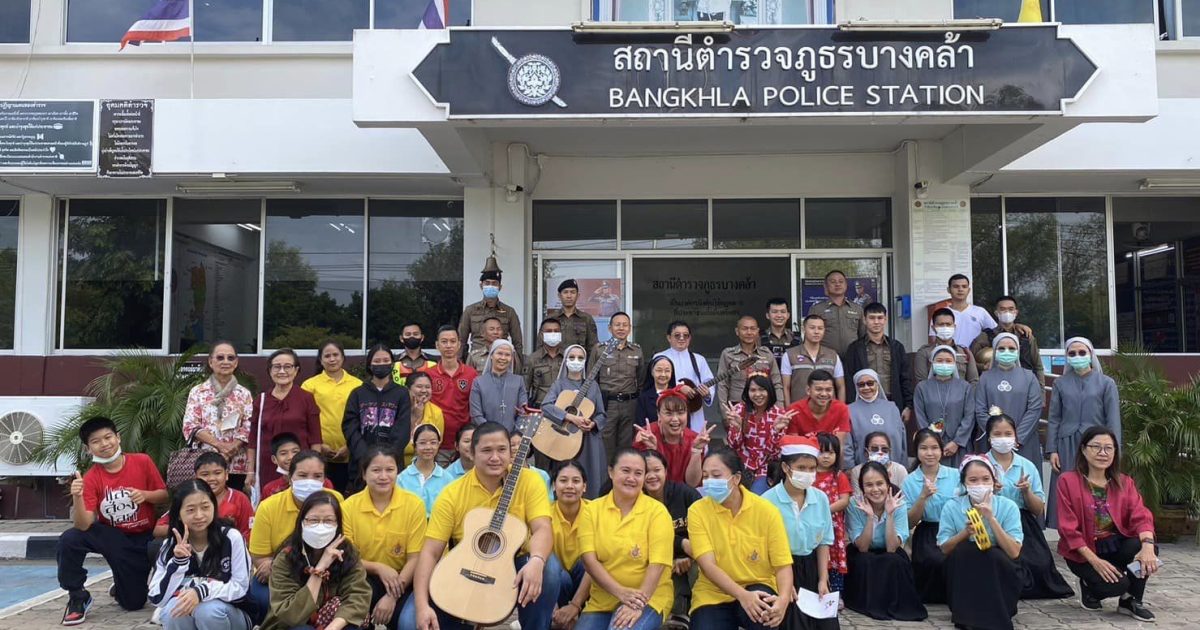 นำข้าราชการตำรวจต้อนรับคณะจากโรงเรียนดาราจรัส ที่ได้เดินทางมาร้องเพลงอวยพรเนื่องในวันคริสต์มาส และวันปีใหม่ 2567 ให้กับข้าราชารตำรวจ สภ.บางคล้า