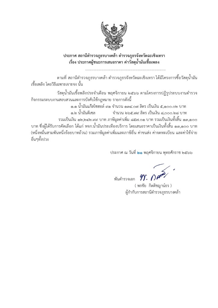ประกาศผู้ชนะการเสนอราคา ค่าพัสดุน้ำมันเชื้อเพลิง โดยวิธีเฉพาะเจาะจง 21 พฤศจิกายน 2023 โดย admbangkhla / ข่าวจัดซื้อจัดจ้าง,ข่าวจัดซื้อจัดจ้าง,งานการเงินและพัสดุ Post Views: 34