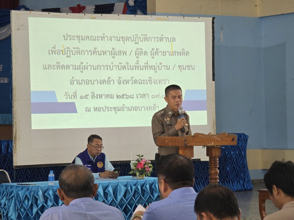 ประชุมคณะทำงานชุดปฏิบัติการตำบล 15 สิงหาคม 2025 โดย admbangkhla / ข่าวกิจกรรม,ข่าวภารกิจผู้บังคับบัญชา Post Views: 210 วันนี้ ที่ ๑๕ สิงหาคม ๒๕๖๘ เวลา ๐๙.๐๐ น. - นายเอกราช กฤตยพงษ์ นายอำเภอบางคล้า, - พ.ต.อ.สุมิตร พรมตอง ผกก.สภ.บางคล้า พร้อมข้าราชการตำรวจสภ.บางคล้า, สภ.สาวชะโงก, หัวหน้าชุดปฏิบัติการ และผู้ใหญ่บ้านในพื้นที่ที่รับผดชอบ ร่วมประชุมคณะทำงานชุดปฏิบัติการตำบลเพื่อปฏิบัติการค้นหาผู้เสพ / ผู้ติด ผู้ค้ายาเสพติดและติดตามผู้ผ่านการบำบัดในพื้นที่หมู่บ้าน / ชุมชนอำเภอบางคล้า จ.ฉะเชิงเทรา