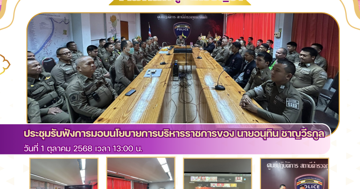 ร่วมประชุมรับฟังการมอบนโยบายการบริหารราชการของ นายอนุทิน ชาญวีรกูล นายกรัฐมนตรี และจาก พล.ต.อ.กิตติ์รัฐ พันธุ์เพ็ชร์ ผู้บัญชาการตำรวจแห่งชาติ