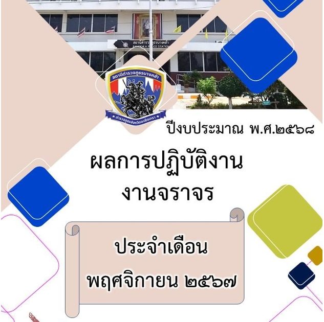 ผลการปฏิบัติงานงานจราจรประจำเดือน พฤศจิกายน 2567 30 พฤศจิกายน 2024 โดย admbangkhla / ผลงานแต่ละงาน,งานจราจร Post Views: 25