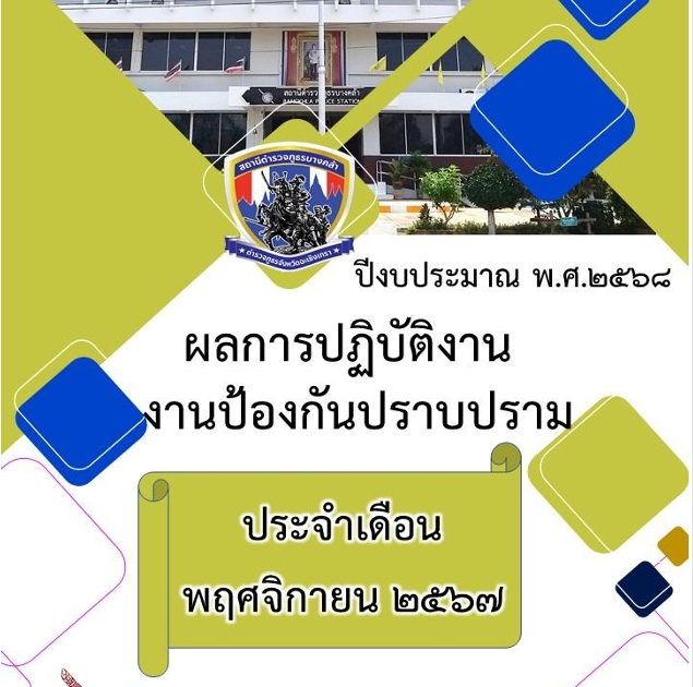 ผลการปฏิบัติงานงานป้องกันปราบปราม ประจำเดือน พฤศจิกายน 2567 30 พฤศจิกายน 2024 โดย admbangkhla / ผลงานแต่ละงาน,งานป้องกันปราบปราม Post Views: 18