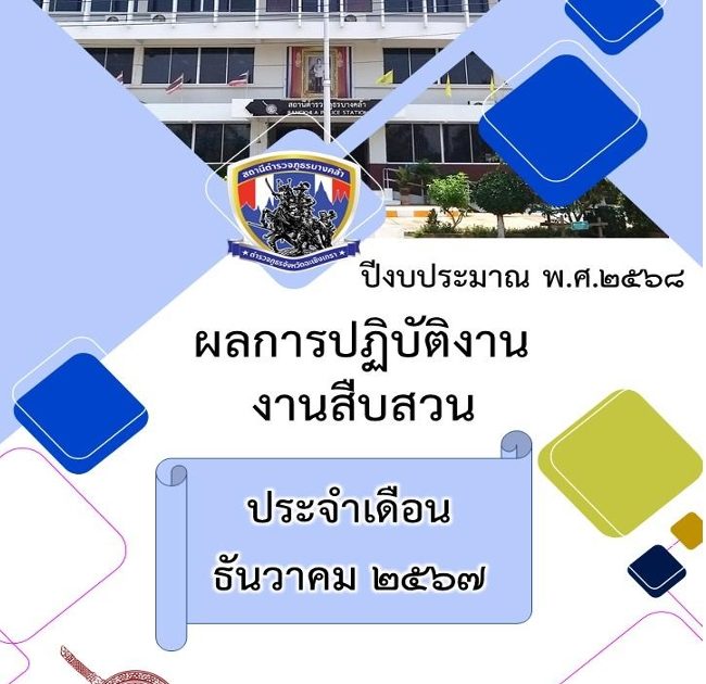 ผลการปฏิบัติงานงานสืบสวน ประจำเดือน ธันวาคม 2567 31 ธันวาคม 2024 โดย admbangkhla / ผลงานแต่ละงาน,งานสืบสวน Post Views: 22