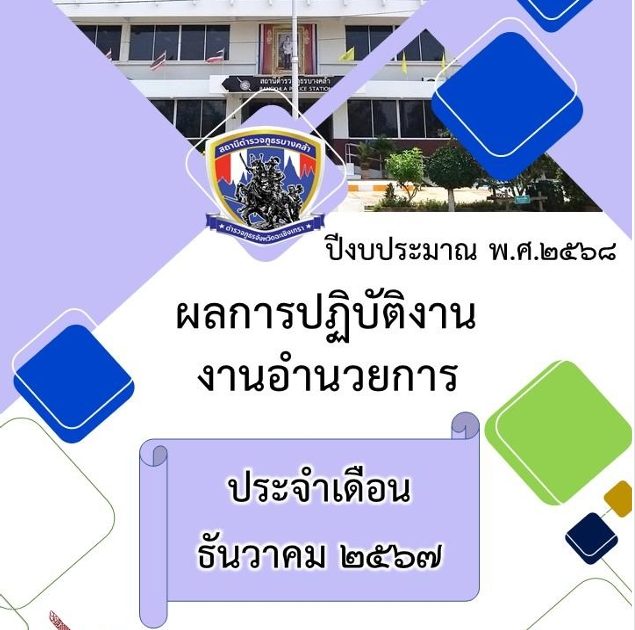 ผลการปฏิบัติงานงานอำนวยการ ประจำเดือน ธันวาคม 2567 31 ธันวาคม 2024 โดย admbangkhla / ผลงานแต่ละงาน,งานอำนวยการ Post Views: 17