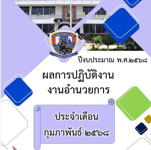ผลการปฏิบัติงานงานอำนวยการ ประจำเดือน กุมภาพันธ์ 2568 28 กุมภาพันธ์ 2025 โดย admbangkhla / ผลงานแต่ละงาน,งานอำนวยการ Post Views: 22