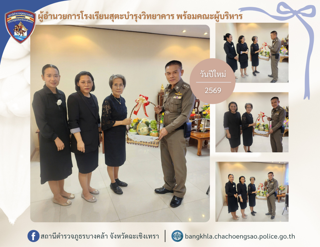 ผู้อำนวยการโรงเรียนสุตะบำรุงวิทยาคาร ได้มอบหมายตัวแทนพร้อมคณะผู้บริหารและครู ได้ร่วมกันอวยพร และ ขอพรเนื่องในวาระดิถีปีใหม่ 2569 23 ธันวาคม 2025 โดย admbangkhla / ข่าวกิจกรรม Post Views: 196 เมื่อวันที่ ( 23 ธันวาคม 2568 ) เวลา 13.30 น. นายอภิชาติ ตะเภาทอง ผู้อำนวยการโรงเรียนสุตะบำรุงวิทยาคาร ได้มอบหมายตัวแทนพร้อมคณะผู้บริหารและครู ได้ร่วมกันอวยพร และ ขอพรเนื่องในวาระดิถีปีใหม่ 2569 จาก พ.ต.อ.สุมิตร พรมตอง ผกก.สภ.บางคล้า