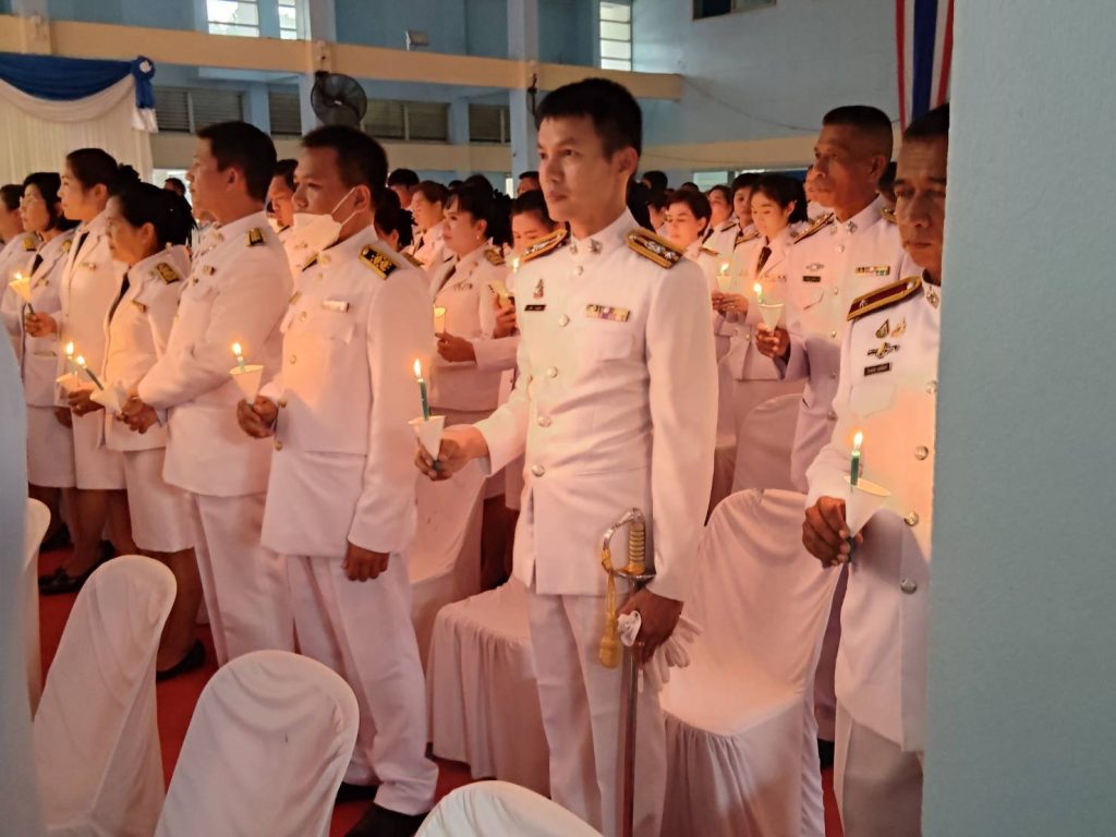 พิธีถวายเครื่องราชสักการะและวางพุ่ม และจุดเทียนถวายพระพรชัยมงคล 12 สิงหาคม 2025 โดย admbangkhla / ข่าวกิจกรรม,ข่าวภารกิจผู้บังคับบัญชา Post Views: 193 เมื่อวันที่ ( ๑๒ ส.ค.๒๕๖๘ ) เวลา ๑๗.๐๐ น. พ.ต.ท. ธงชัย วงบุดดา รอง.ผกก(สอบสวน).สภ.บางคล้า -ร.ต.ต.ไกรลาศ แสงจันทร์ รอง สว.(สส.) สภ.บางคล้า -ร.ต.ต.พีระพงศ์ พรพลาดิศัย รอง.สว(ป).สภ.บางคล้า เข้าร่วมพิธีถวายเครื่องราชสักการะและวางพุ่ม และจุดเทียนถวายพระพรชัยมงคล เนื่องในวันเฉลิมพระชนมพรรษา สมเด็จพระเจ้า สิริกิติ์พระบรมราชินีนาถ พระบรมราชชนนีพันปีหลวง วันที่ ๑๒ สิงหาคม ๒๕๖๘ ณ หอประชุมอำเภอบางคล้า อ.บางคล้า จ.ฉะเชิงเทรา โดยมี นายเอกราช กฤตยพงษ์ นายอำเภอบางคล้า เป็นประธานในพิธี, พร้อมด้วยหัวหน้าส่วนราชการ/องค์การปกครองส่วนถ้องถิ่น/ภาคเอกชน ร่วมพิธีฯ ดังกล่าว โดยพร้อมเพรียงกัน