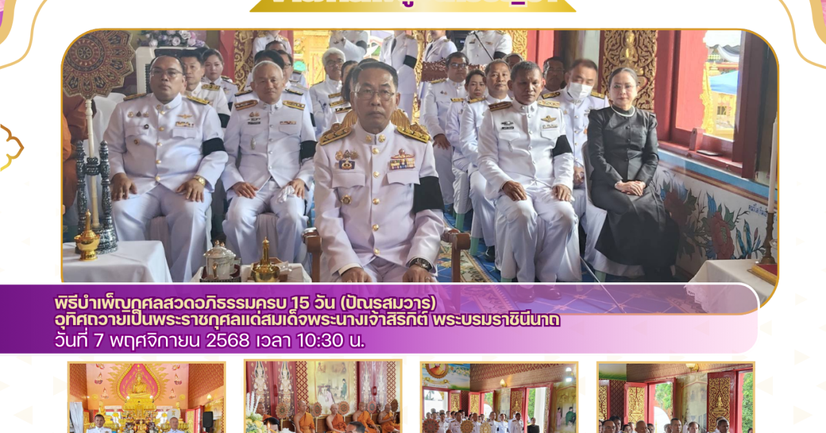 พิธีบำเพ็ญกุศลสวดอภิธรรมครบ 15 วัน (ปัณรสมวาร) อุทิศถวายเป็นพระราชกุศลแด่สมเด็จพระนางเจ้าสิริกิต์ พระบรมราชินีนาถ 7 พฤศจิกายน 2025 โดย admbangkhla / ข่าวกิจกรรม Post Views: 223 วันนี้ (๗. พ.ย.๒๕๖๘) เวลา ๑๐.๓๐ น. พ.ต.ท.ชูศักดิ์ เอี่ยมนิรันดร์ สว.ป สภ.บางคล้า พ.ต.ท เลอศักดิ์ มั่นสมบูรณ์ สว.อก สภ.บางคล้า และข้าราชการตำรวจ สภ.บางคล้า ร่วมพิธีบำเพ็ญกุศลสวดอภิธรรมครบ ๑๕ วัน(ปัณรสมวาร) เพื่ออุทิศถวายเป็นพระราชกุศลแด่สมเด็จพระนางเจ้าสิริกิต์ พระบรมราชินีนาถ พระบรมราชชนนีพันปีหลวง ณ วัดหัวไทร ต.หัวไทร อ.บางคล้า จ.ฉะเชิงเทรา โดยมี นายเอกราช กฤตยพงษ์ นายอำเภอบางคล้า เป็นประธานในพิธี, พร้อมด้วยหัวหน้าส่วนราชการ/องค์การปกครองส่วนถ้องถิ่น/ภาคเอกชน ร่วมพิธีฯ ดังกล่าว โดยพร้อมเพรียงกัน