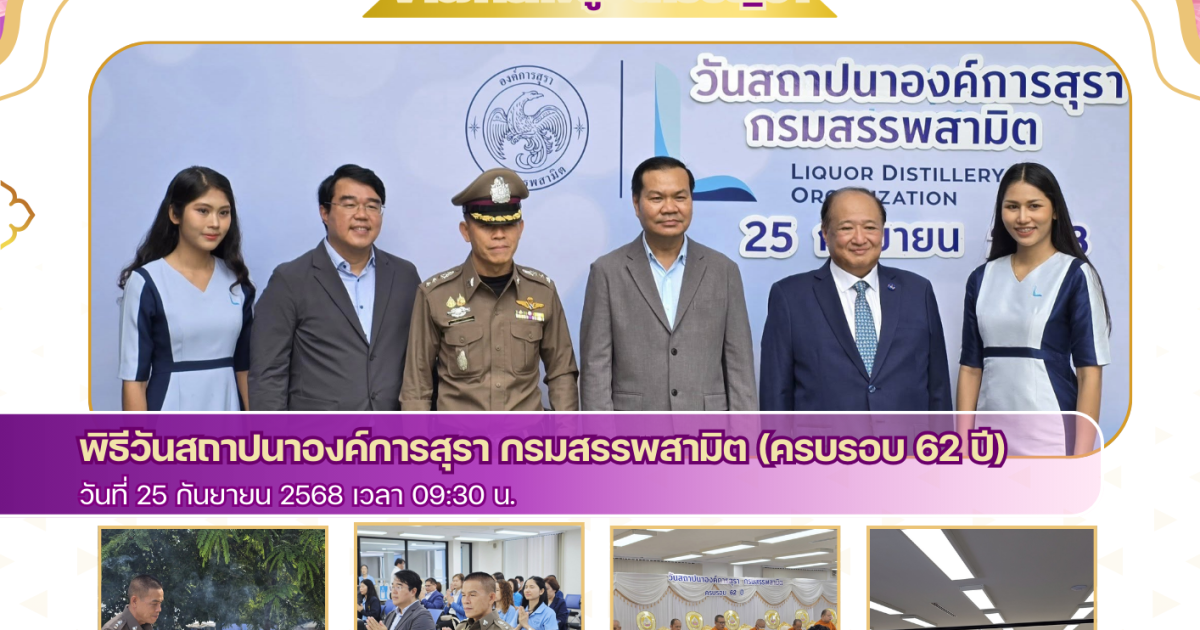 พิธีวันสถาปนาองค์การสุรา กรมสรรพสามิต (ครบรอบ 62 ปี) 25 กันยายน 2025 โดย admbangkhla / ข่าวกิจกรรม,ข่าวภารกิจผู้บังคับบัญชา Post Views: 214 วันนี้ ที่ ๒๕ กันยายน ๒๕๖๘ เวลา ๐๙.๓๐ น. พ.ต.อ.สุมิตร พรมตอง ผกก.สภ.บางคล้า เดินทางร่วมพิธี วันสถาปนาองค์การสุรา กรมสรรพสามิต (ครบรอบ ๖๒ ปี) ณ ห้องประชุมชั้น ๒ อาคารฝ่ายผลิต องค์การสุรา ฯ อ.บางคล้า จ.ฉะเชิงเทรา
