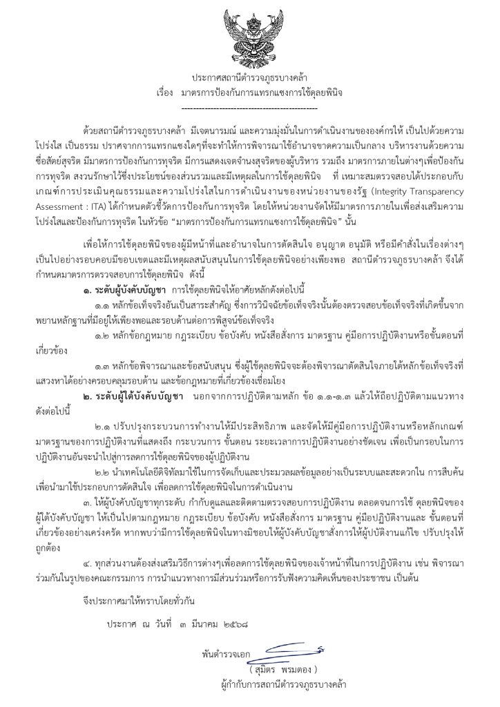 มาตราการป้องกันการแทรกแซง การใช้ดุลยพินิจ 25 มกราคม 2024 โดย admbangkhla / หัวข้อ 03 Post Views: 72 สภ.บางคล้า ประกาศมาตราการป้องกันการแทรกแซงการใช้ดุลยพินิจ พ.ศ.2567 >>>ไฟล์ PDF