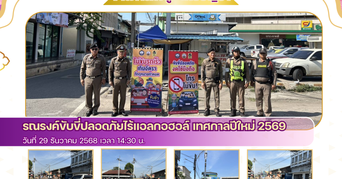 รณรงค์ขับขี่ปลอดภัยไร้แอลกอฮอล์ เทศกาลปีใหม่ 2569 29 ธันวาคม 2025 โดย admbangkhla / ข่าวกิจกรรม,ข่าวภารกิจผู้บังคับบัญชา,ผลงานแต่ละงาน,งานจราจร,ผลงานแต่ละงาน Post Views: 210 พ.ต.อ.สุมิตร พรมตอง ผกก.สภ.บางคล้า ,พ.ต.ท.จิระพงษ์ รอดเงิน รอง ผกก.ป.สภ.บางคล้า , พ.ต.ท.ชูศักดิ์ เอี่ยมนิรันดร์ สวป.สภ.บางคล้า ปล่อยแถวตรวจความพร้อมปฏิบัติหน้าที่ สายตรวจรถยนต์,สายตรวจจักรยานยนต์,จราจร และ ร่วมรณรงค์ขับขี่ปลอดภัยไร้แอลกอฮอล์ เทศกาลปีใหม่ 2569