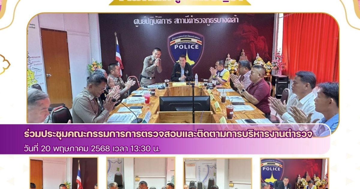 ร่วมประชุมคณะกรรมการการตรวจสอบและติดตามการบริหารงานตำรวจ สถานีตำรวจภูธรบางคล้า ครั้งที่ 2/2568 ณ ห้องประชุม ชั้น 3 สภ.บางคล้า โดยมีวาระการประชุมดังนี้