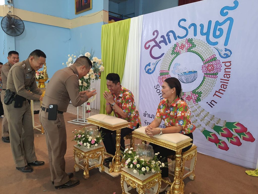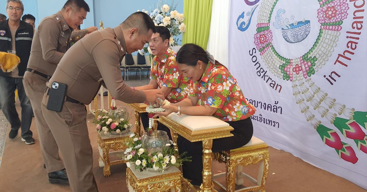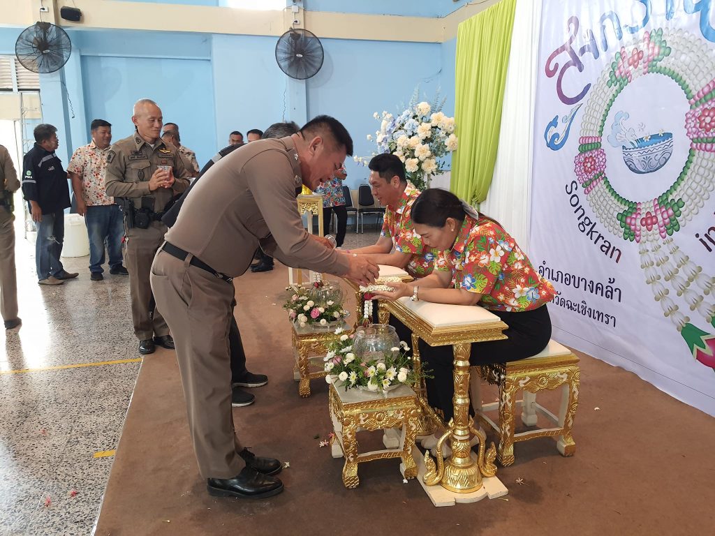 ร่วมพิธีรดน้ำดำหัว นายสุพจน์ ตรีรัตนนุกูล นายอำเภอบางคล้า และภรรยา ตามประเพณีปฏิบัติเนื่องในโอกาสวันสงกรานต์ ประจำปี ๒๕๖๗ 11 เมษายน 2024 โดย admbangkhla / ข่าวกิจกรรม,ข่าวภารกิจผู้บังคับบัญชา Post Views: 73 วันนี้ ( ๑๑ เมษายน ๒๕๖๗ ) เวลา ๑๖.๐๐ น. พ.ต.อ.พรชัย กิตติชญาน์ธร ผกก.สภ.บางคล้า, พ.ต.ท.เอกภพ ธรรมาธิกุล รอง ผกก.สส.สภ.บางคล้า, พ.ต.ท.จิระพงษ์ รอดเงิน รอง ผกก.ป.สภ.บางคล้า, พ.ต.ท.เลอศักดิ์ มั่นสมบูรณ์ สวป.สภ.บางคล้า, พ.ต.ต.ชูศักดิ์ เอี่ยมนิรันดร์ สว.อก.ฯปรท.สวป.สภ.บางคล้า, ร.ต.อ.พิเชษฐ สินเจริญ รอง สวป.สภ.บางคล้า และข้าราชการตำรวจ สภ.บางคล้า ร่วมพิธีรดน้ำดำหัว นายสุพจน์ ตรีรัตนนุกูล นายอำเภอบางคล้า และภรรยา ตามประเพณีปฏิบัติเนื่องในโอกาสวันสงกรานต์ ประจำปี ๒๕๖๗ ณ บริเวณหอประชุมอำเภอบางคล้า จังหวัดฉะเชิงเทรา