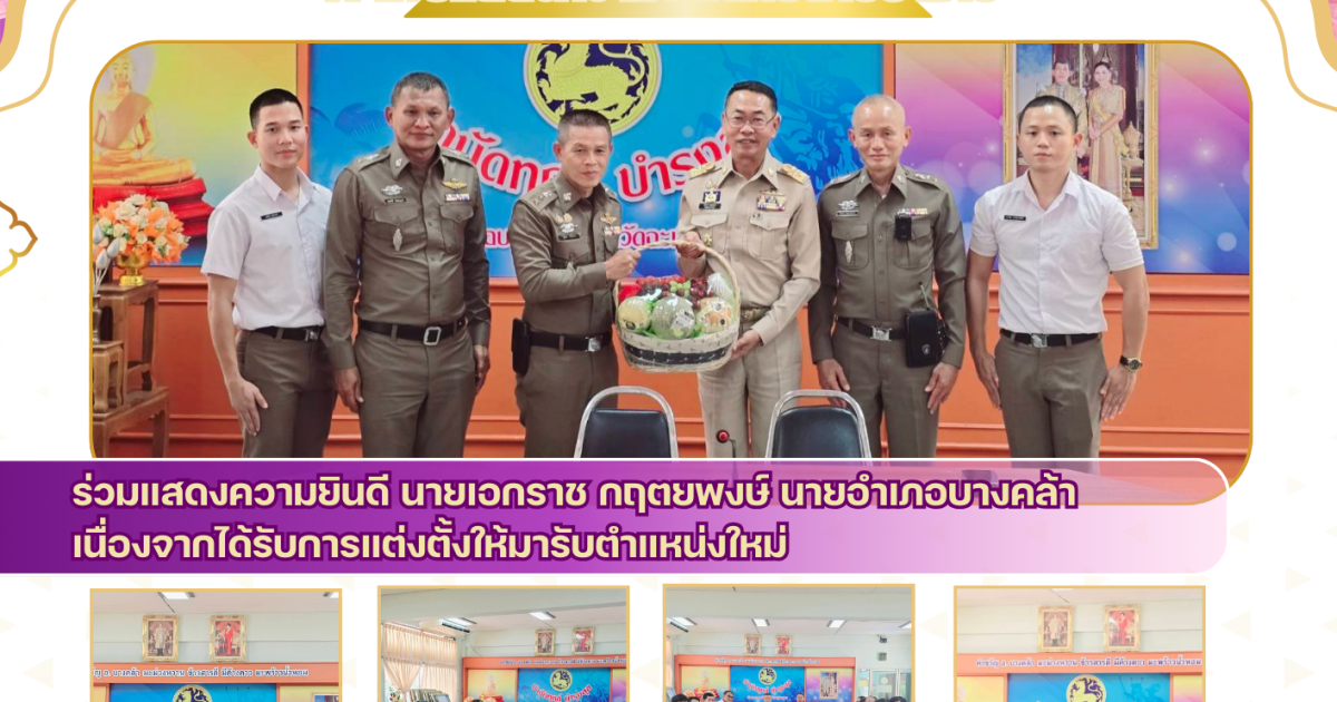 ร่วมแสดงความยินดี นายเอกราช กฤตยพงษ์ นายอำเภอบางคล้า เนื่องจากได้รับการแต่งตั้งให้มารับตำแหน่งใหม่ 10 มีนาคม 2025 โดย admbangkhla / ข่าวภารกิจผู้บังคับบัญชา Post Views: 137 เมื่อวันที่ (๑๐ มีนาคม ๒๕๖๘) เวลา ๑๕.๓๐ น. พ.ต.อ. สุมิตร พรมตอง ผกก.สภ.บางคล้า, พ.ต.ท. เลอศักดิ์ มั่นสมบูรณ์ สว.อก.สภ.บางคล้า, พ.ต.ท. ชูศักดิ์ เอี่ยมนิรันดร์ สวป.สภ.บางคล้า พร้อมคณะ กต.ตร.สภ.เมืองฉะเชิงเทรา เข้าพบร่วมแสดงความยินดี นายเอกราช กฤตยพงษ์ นายอำเภอบางคล้า เนื่องจากได้รับการแต่งตั้งให้มารับตำแหน่งใหม่ กล่าวขอบคุณคณะฯ และ พร้อมทั้งชี้แจงแนวทางการปฏิบัติราชการรวมถึงปัญหาและอุปสรรคในการปฏิบัติหน้าที่ จะได้ประสานในการปฏิบัติราชการร่วมกันแก้ไขต่อไป