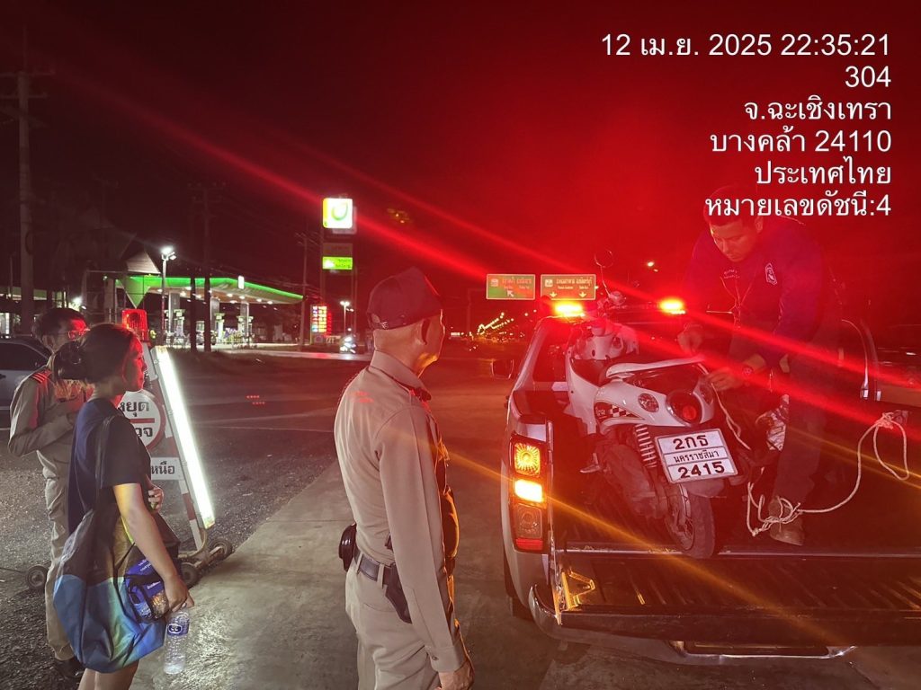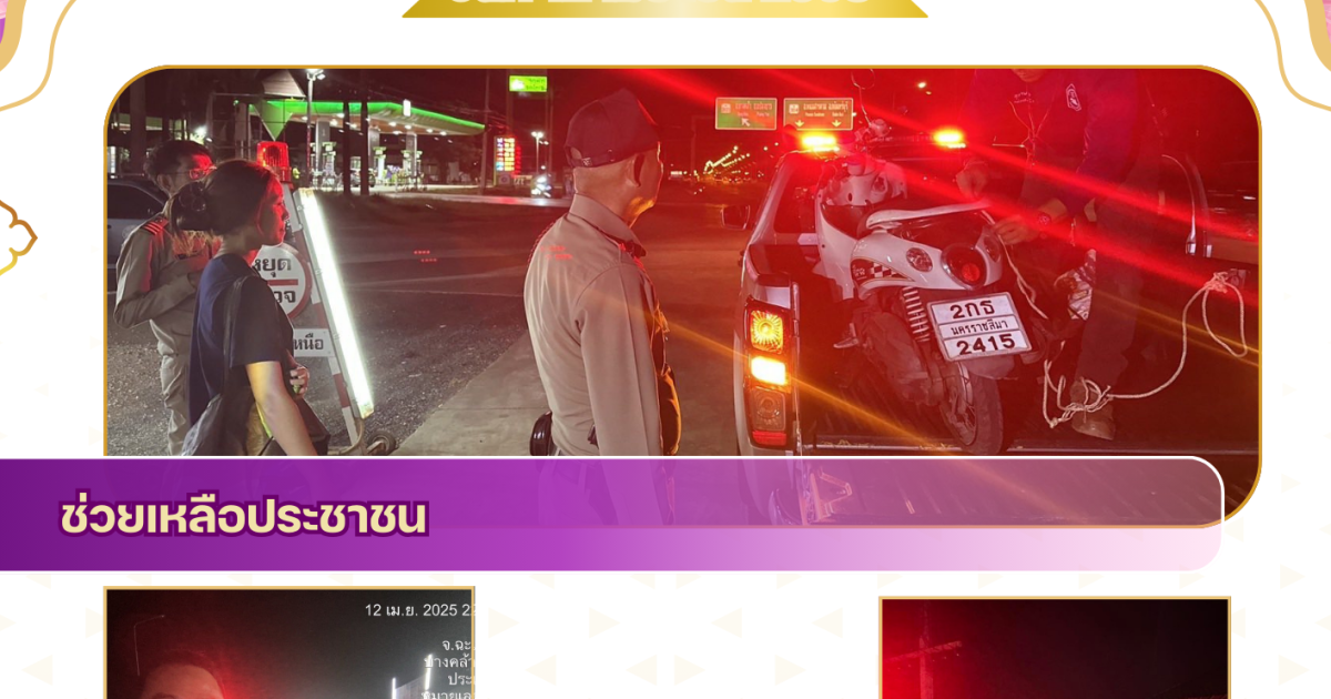 สายตรวจจราจรตู้สี่แยกบางคล้า ให้การช่วยเหลือรถจักรยานยนต์ ยางแตก บริเวณจุดบริการประชาชน อตก. 12 เมษายน 2025 โดย admbangkhla / ผลงานแต่ละงาน,งานจราจร,ช่วยเหลือบริการประชาชน Post Views: 165 วันที่ 12 เมษายน 2568 เวลา ประมาณ 23.20 น. สายตรวจจราจรตู้สี่แยกบางคล้า ให้การช่วยเหลือรถจักรยานยนต์ ยางแตก บริเวณจุดบริการประชาชน อตก. สี่แยกบางคล้า ถนน 304 แต่เนื่องจากร้านเปลี่ยนยางได้ปิดหมดแล้ว สายตรวจจราจรสี่แยกบางคล้า จึงได้ทำการช่วยเหลือในการไปส่งที่หมาย ที่อำเภอแปลงยาว เรียบร้อย