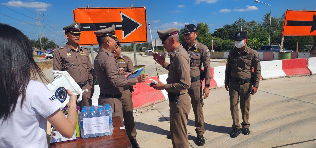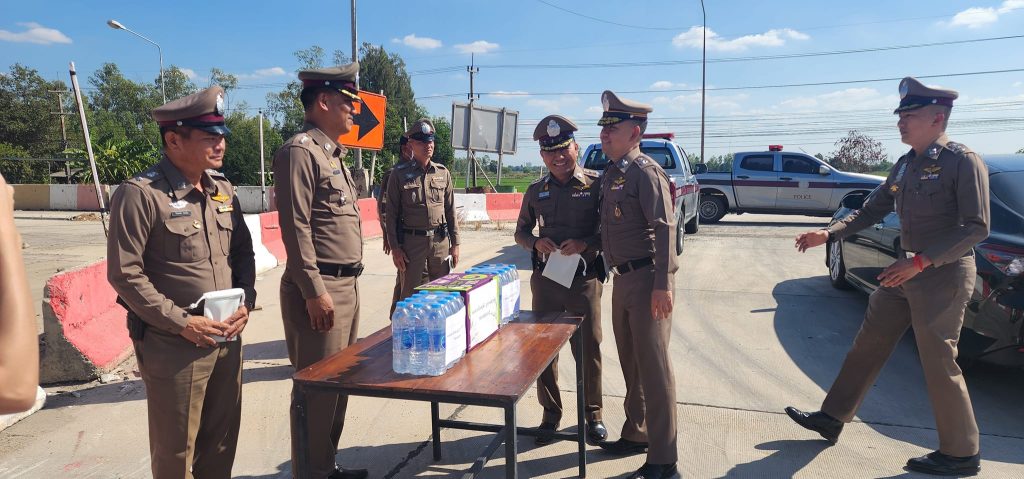 วันนี้( ๒๘ ธ.ค.2566) เวลา ๑๔.๐๐ น.พล.ต.ต.นันทวุฒิ สุวรรณละออง รอง ผบช.ภ.๒ ,พ.ต.อ.สุขทัศน์ พุ่มพันธ์ม่วง รอง ผบก.ภ.จว.ฉะเชิงเทรา ได้เดินทางมาตรวจจุดสร้างสะพานข้ามทางแยก บริเวณ สามแยกหนองปลาตะเพียน ถนนสาย ๓๐๔ เขตพื้นที่ สภ.บางคล้า ในการดูแลความปลอดภัย–อำนวยความสะดวกการจราจรรับ เทศกาลปีใหม่ ๒๕๖๗ พบ พ.ต.อ.พรชัย กิตติชญาน์ธร ผกก.สภ.บางคล้า,พ.ต.ท.จิระพงษ์ รอดเงิน รอง ผกก.ป.สภ.บางคล้า,พ.ต.ต.ชูศักดิ์ เอี่ยมนิรันดร์ สว.อก.ฯ ปรท.สวป.สภ.บางคล้า ,พร้อมข้าราชการตำรวจ สภ.บางคล้า ปฏิบัติหน้าที่ ได้มอบน้ำดื่ม,เครื่องดื่มบำรุง และ ของที่ระลึก เนื่องในโอกาสวันขึ้นปีใหม่ ๒๕๖๗ เพื่อเป็นขวัญกำลังใจ ให้แก่ข้าราชการตำรวจในสังกัด ต่อไป