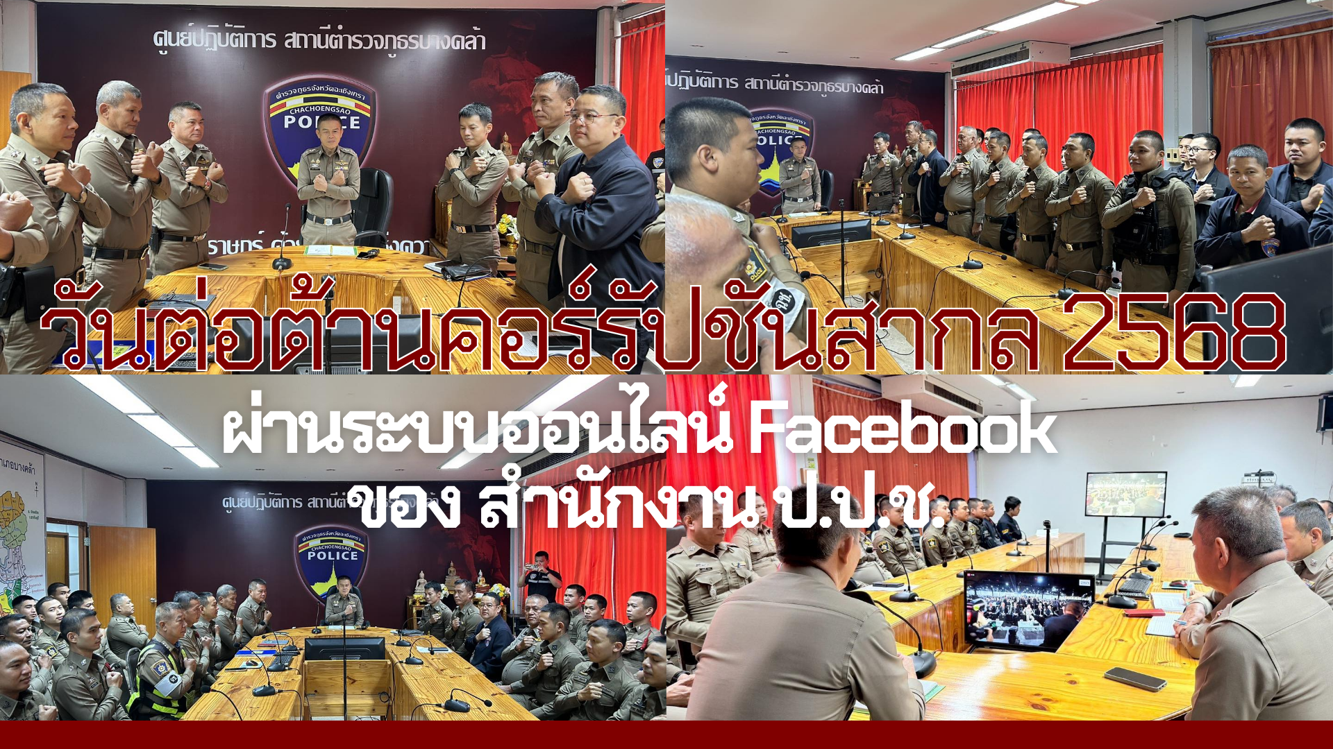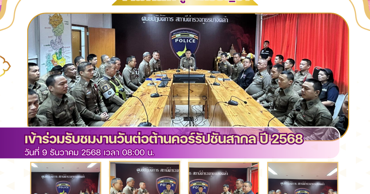 เข้าร่วมรับชมงานวันต่อต้านคอร์รัปชันสากล (ประเทศไทย) ปี 2568 ผ่านระบบออนไลน์ Facebook ของ สำนักงาน ป.ป.ช. ณ ห้องประชุม ศปก.สภ.บางคล้า
