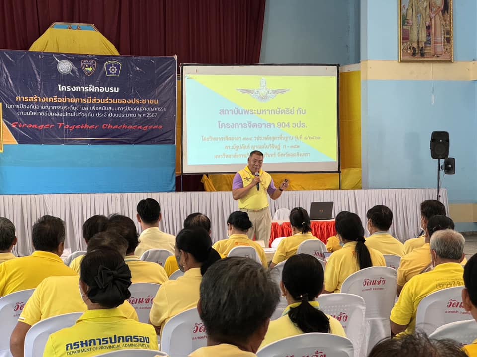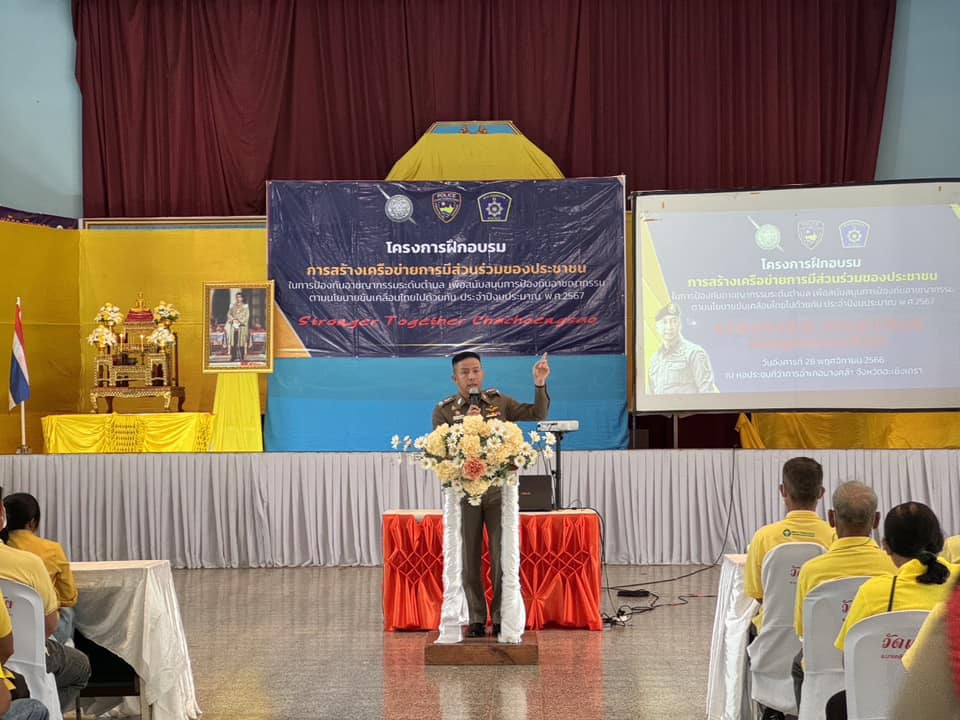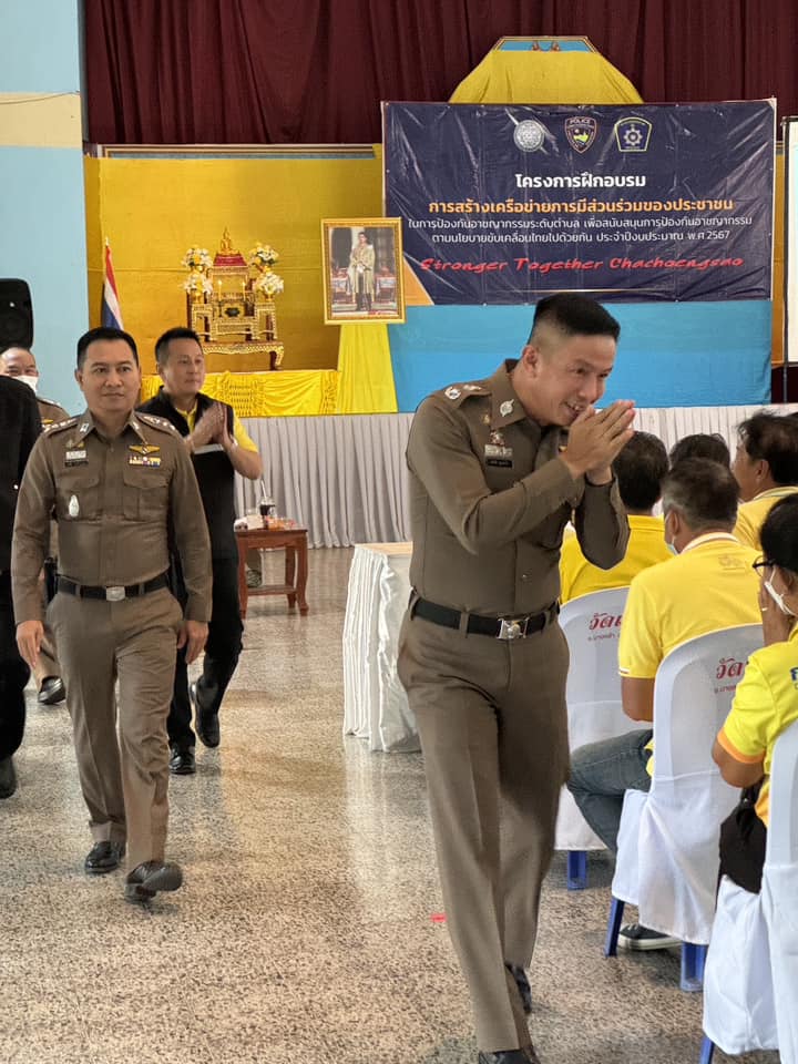 วันที่ 28 พ.ย 66 เวลา 09.00 น.พล.ต.ต.นเรวิช สุคนธวิท ผบก.ภ.จว.ฉะเชิงเทรา,พ.ต.อ.กิตติสัณห์ ชะนะ รอง ผบก.ภ.จว.ฉะเชิงเทรา,พ.ต.อ.พรชัย กิตติชญาน์ธร ผกก.สภ.บางคล้า,พ.ต.อ.ปรีชา นิสัยสม ผกก.สภ.แปลงยาว,พ.ต.อ.กฤตปณิธิ พุฒศิริ ผกก.สภ.ราชสาส์น,พ.ต.ท.จีระศักดิ์ สมศรี สว.สภ.สาวชะโงก,พ.ต.ท.สมศักดิ์ อินสุข รอง ผกก.ป.สภ.บางคล้า,พ.ต.ท.เลอศักดิ์ มั่นสมบูรณ์ สวป.ฯปรท.สว.อก.สภ.บางคล้า,พ.ต.ต.ชูศักดิ์ เอี่ยมนิรันดร์ สว.อก.ฯปรท.สวป.สภ.บางคล้า,พร้อมทั้งประธาน/คณะกรรมการ กต.ตร.สภ.บางคล้า เข้าร่วมโครงการฝึกอบรมการสร้างเครือข่ายการมีส่วนร่วมของประชาชนในการป้องกันอาชญากรรมระดับตำบล ประจำปีงบประมาณ พ.ศ.2567 เพื่อสนับสนุนการป้องกันอาชญากรรม ตามนโยบายขับเคลื่อนไทยไปด้วยกัน (Stronger Together) โดยให้สภ.คัดเลือกประชาชนจากทุกสาขาอาชีพที่มีบทบาทในสังคมหรือชุมชนนั้นๆ สภ.ละ 50 คน ประกอบด้วย สภ.บางคล้า,สภ.แปลงยาว,สภ.ราชสาส์น,สภ.สาวชะโงก รวมจำนวน 200 คน ณ หอประชุมอำเภอบางคล้า โดยมี พล.ต.ต.นเรวิช สุคนธวิท