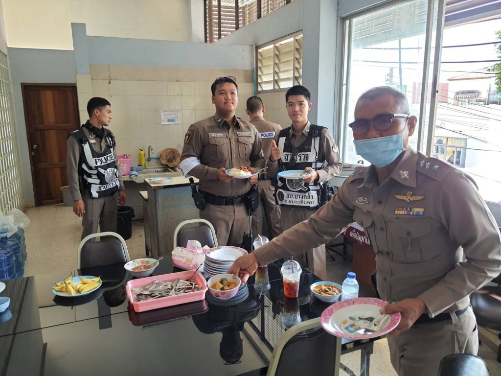 ในวันนี้ ได้รับการสนับสนุนทอดมันปลากราย จากนายเพ็ชรัตน์ พวงเจริญ ที่ปรึกษา กต.ตร.สภ.บางคล้า และ เนื้อหมูสด จาก บริษัท บางคล้าพัฒนา จำกัด (โรงหมูบางคล้า) โดยมีแม่บ้านสายลม เป็นผู้ประกอบอาหารประจำวันนี้ ได้แก่.- เกงหมู+ ทอดมันปลากรายมีข้าราชการตำรวจที่ปฏิบัติหน้าที่ ประจำสถานีและนอกสถานี ในสังกัด สภ.บางคล้า ร่วมรับประทานอาหารกลางวัน ตามโครงการฯ โดยพร้อมเพรียงกัน
