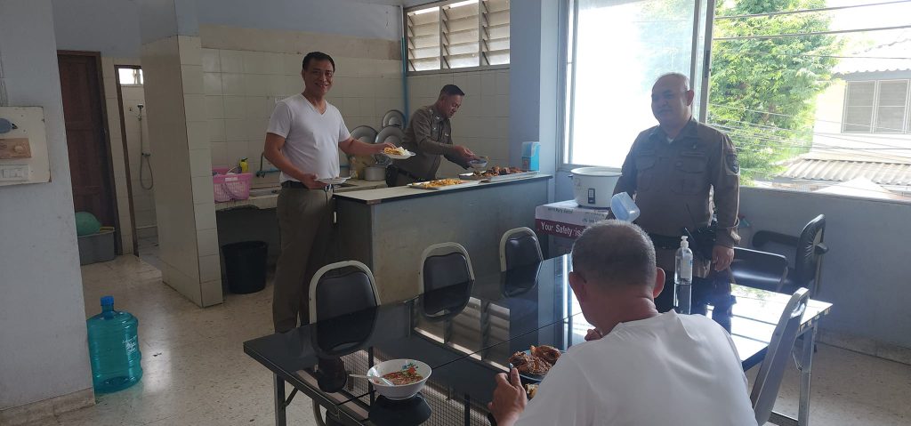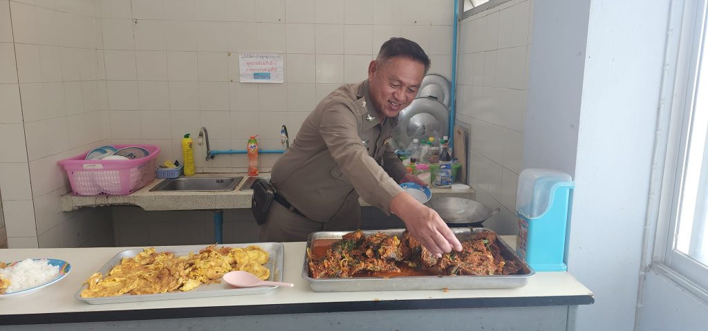 วันนี้ (1 มี.ค.๒๕๖๗) เวลา ๑๒.๐๐ น. พ.ต.อ.พรชัย กิตติชญาน์ธร ผกก.สภ.บางคล้า ได้จัดโครงการสวัสดิการอาหารกลางวันแก่ข้าราชการตำรวจในสังกัดสถานีตำรวจภูธรบางคล้า เพื่อเสริมสร้างความสามัคคี บำรุงขวัญกำลังใจ และพัฒนาคุณภาพชีวิต เป็นสวัสดิการ ลดค่าใช้จ่าย ของข้าราชการตำรวจ โดยจัดโครงการในทุกวันจันทร์-พุธ-ศุกร์ ของสัปดาห์ ณ ห้องอาหาร ชั้นลอย ของ สภ.บางคล้า ในวันนี้ ได้รับการสนับสนุนปลานิลสดจาก นายเพ็ชรรัตน์ พวงเจริญ ที่ปรึกษา กต.ตร.สภ.บางคล้า เจ้าของแพปลาเพ็ชรัตน์ สี่แยกบางคล้า เป็นวัตถุดิบ โดยมี ร.ต.ต.อำนวย ด้วงทอง จนท.ปฎิบัติหน้าที่สายตรวจ ตำบลปากน้ำ – หัวไทร – บางกระเจ็ด เป็นผู้ประกอบอาหาร ประจำวันนี้ ได้แก่.- ผักพริกปลานิล +ไข่เจียว โดยมีข้าราชการตำรวจที่ปฏิบัติหน้าที่ ประจำสถานีและนอกสถานี ในสังกัด สภ.บางคล้า ร่วมรับประทานอาหารกลางวัน ตามโครงการฯ โดยพร้อมเพรียงกัน