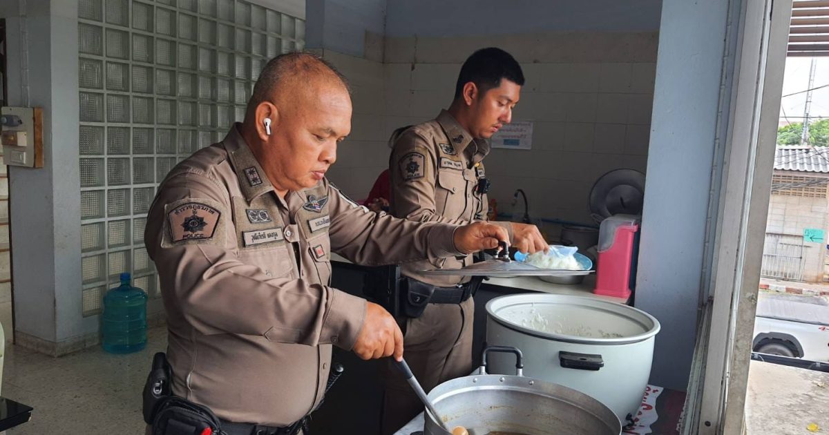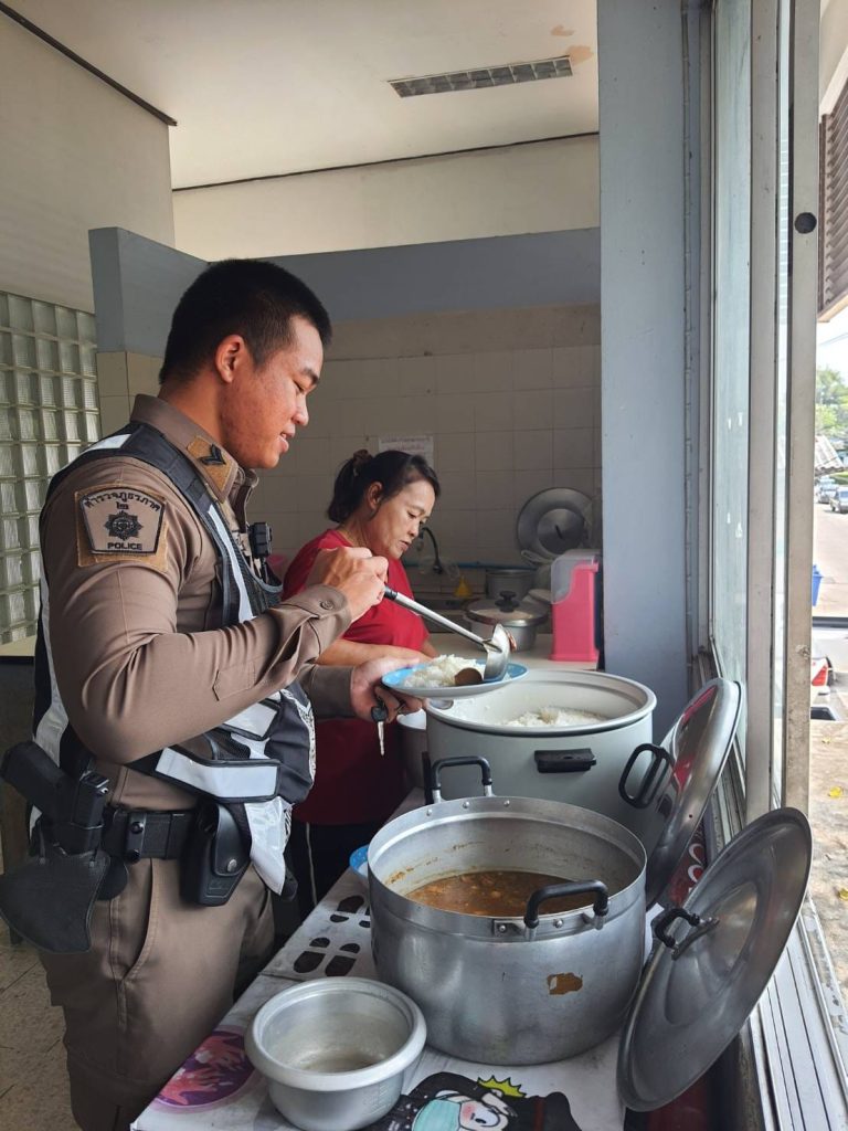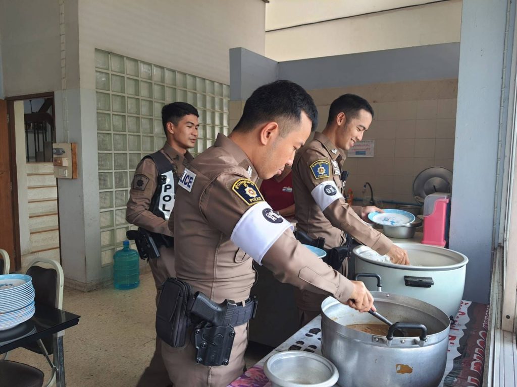 โครงการสวัสดิการอาหารกลางวัน ได้รับการสนับสนุนจาก กต.ตร.สภ.บางคล้า 5 มีนาคม 2024 โดย admbangkhla / ผลงานคณะกรรมการ กต.ตร. Post Views: 33 วันนี้ (๔ มี.ค.๖๗) เวลา ๑๒.๐๐ น. พ.ต.อ.พรชัย กิตติชญาน์ธร ผกก.สภ.บางคล้า ได้จัดโครงการสวัสดิการอาหารกลางวันแก่ข้าราชการตำรวจในสังกัดสถานีตำรวจภูธรบางคล้า เพื่อเสริมสร้างความสามัคคี บำรุงขวัญกำลังใจ และพัฒนาคุณภาพชีวิต เป็นสวัสดิการ ลดค่าใช้จ่าย ของข้าราชการตำรวจ โดยจัดโครงการในทุกวันจันทร์-พุธ-ศุกร์ ของสัปดาห์ ณ ห้องอาหาร ชั้นลอย ของ สภ.บางคล้า ในวันนี้ ได้รับการสนับสนุนเนื้อหมูจาก โรงงานแปรรูปสุกร (บางคล้า) เป็นวัตถุดิบ โดยมี แม่บ้านสายลม เป็นผู้ประกอบอาหาร ประจำวันนี้ ได้แก่.- พะโล้หมู โดยมีข้าราชการตำรวจที่ปฏิบัติหน้าที่ ประจำสถานีและนอกสถานี ในสังกัด สภ.บางคล้า ร่วมรับประทานอาหารกลางวัน ตามโครงการฯ โดยพร้อมเพรียงกัน