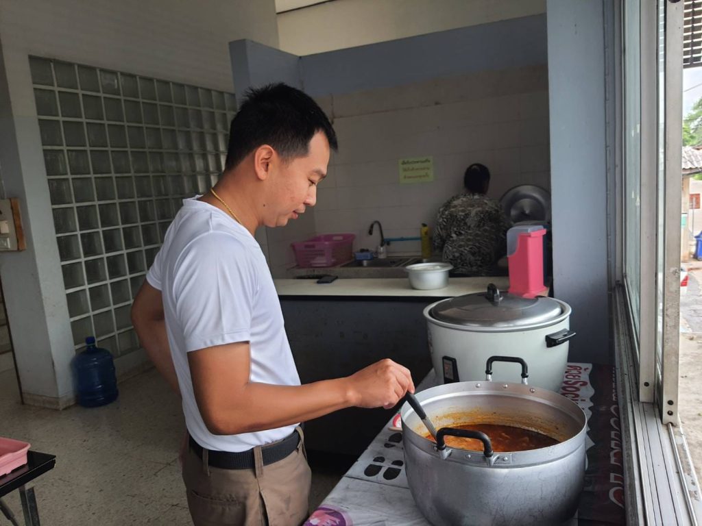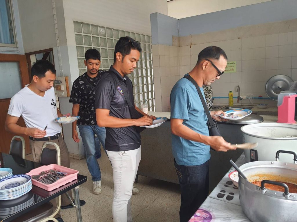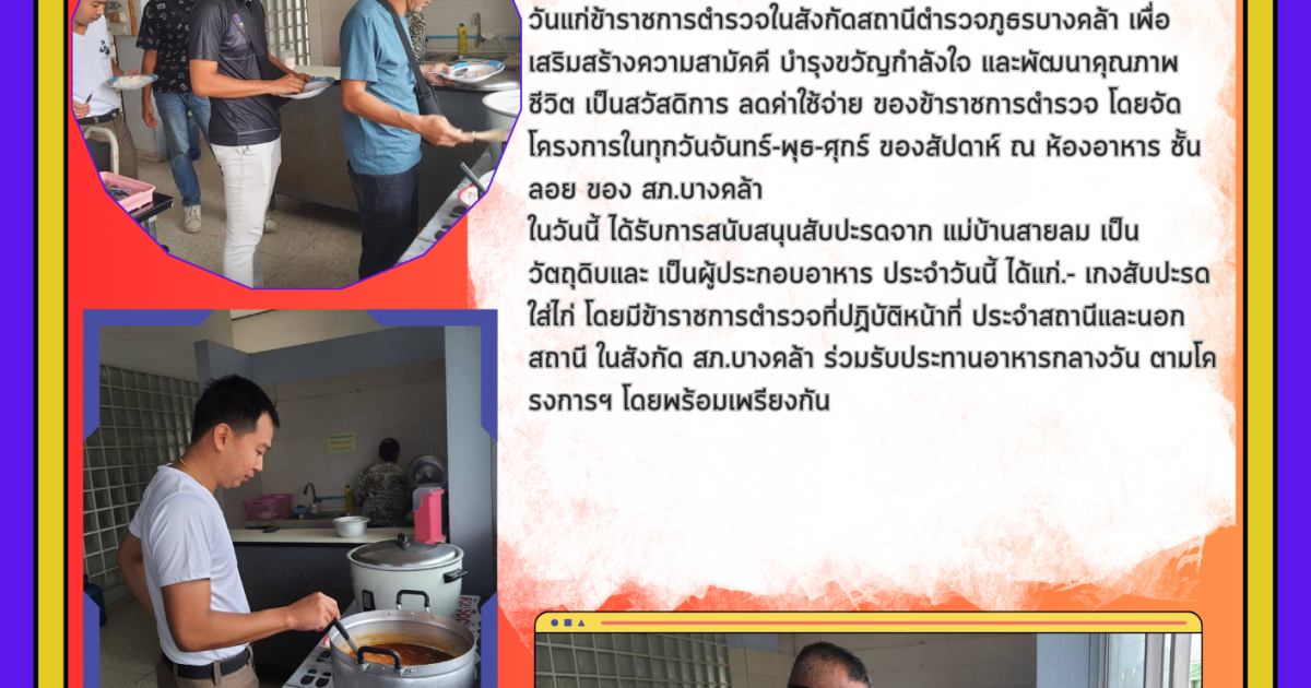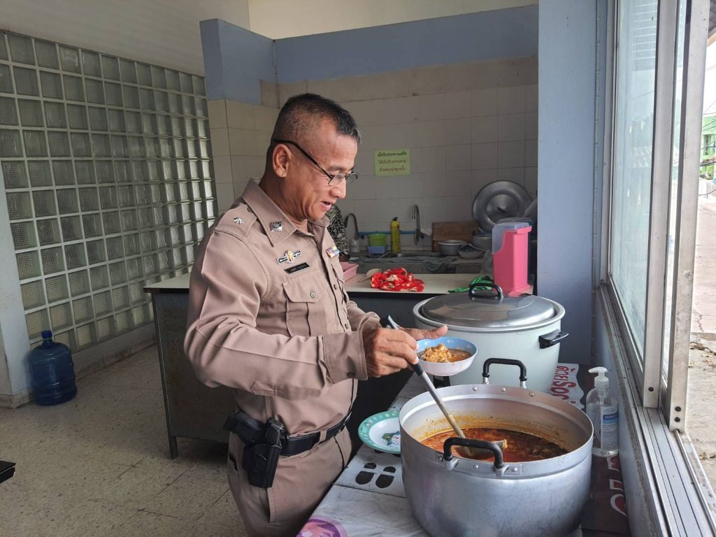 โครงการสวัสดิการอาหารกลางวัน ได้รับการสนับสนุนจาก กต.ตร.สภ.บางคล้า 20 พฤษภาคม 2024 โดย admbangkhla / ผลงานคณะกรรมการ กต.ตร. Post Views: 39 วันนี้ (๒๐ พฤษภาคม ๒๕๖๗) เวลา ๑๒.๐๐ น. พ.ต.อ.พรชัย กิตติชญาน์ธร ผกก.สภ.บางคล้า ได้จัดโครงการสวัสดิการอาหารกลางวันแก่ข้าราชการตำรวจในสังกัดสถานีตำรวจภูธรบางคล้า เพื่อเสริมสร้างความสามัคคี บำรุงขวัญกำลังใจ และพัฒนาคุณภาพชีวิต เป็นสวัสดิการ ลดค่าใช้จ่าย ของข้าราชการตำรวจ โดยจัดโครงการในทุกวันจันทร์-พุธ-ศุกร์ ของสัปดาห์ ณ ห้องอาหาร ชั้นลอย ของ สภ.บางคล้า ในวันนี้ ได้รับการสนับสนุนสับปะรดจาก แม่บ้านสายลม เป็นวัตถุดิบและ เป็นผู้ประกอบอาหาร ประจำวันนี้ ได้แก่.- เกงสับปะรดใส่ไก่ โดยมีข้าราชการตำรวจที่ปฏิบัติหน้าที่ ประจำสถานีและนอกสถานี ในสังกัด สภ.บางคล้า ร่วมรับประทานอาหารกลางวัน ตามโครงการฯ โดยพร้อมเพรียงกัน
