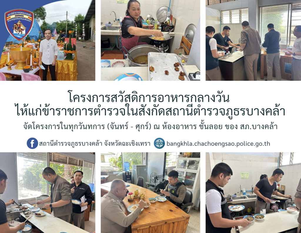 วันนี้ (8 ธันวาคม 2568) เวลา 12.00 น. พ.ต.อ.สุมิตร พรมตอง ผกก.สภ.บางคล้า ได้จัดโครงการสวัสดิการอาหารกลางวัน ไห้แก่ข้าราชการตำรวจในสังกัดสถานีตำรวจภูธรบางคล้า เพื่อเสริมสร้างความสามัคคี บำรุงขวัญกำลังใจ และพัฒนาคุณภาพชีวิต เป็นสวัสดิการ ลดค่าใช้จ่าย ของข้าราชการตำรวจ โดยจัดโครงการในทุกวันทการ (จันทร์ - ศุกร์ ) ณ ห้องอาหาร ชั้นลอย ของ สภ.บางคล้า