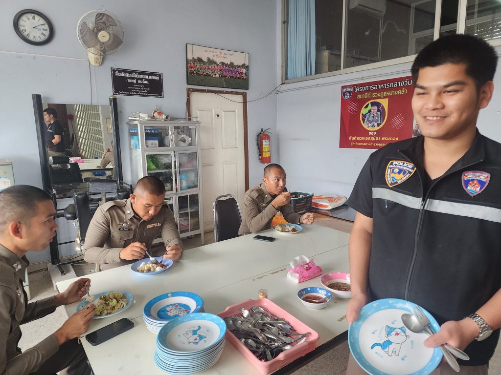 วันนี้ (๑ เมษายน ๒๕๖๘) เวลา ๑๒.๐๐ น. พ.ต.อ.สุมิตร พรมตอง ผกก.สภ.บางคล้า ได้จัดโครงการสวัสดิการอาหารกลางวัน ไห้แก่ข้าราชการตำรวจในสังกัดสถานีตำรวจภูธรบางคล้า เพื่อเสริมสร้างความสามัคคี บำรุงขวัญกำลังใจ และพัฒนาคุณภาพชีวิต เป็นสวัสดิการ ลดค่าใช้จ่าย ของข้าราชการตำรวจ โดยจัดโครงการในทุกวันทการ (จันทร์ – ศุกร์ ) ณ ห้องอาหาร ชั้นลอย ของ สภ.บางคล้า ในวันนี้ ได้รับการสนับสนุนปลาทอดมัน + กะหล่ำปลี จาก นายฐานพัฒน์ โพธิ์วสิน คณะกรรมการ กต.ตร.สภ.บางคล้า/เจ้าของแพปลารุ่งเรือง สี่แยกบางคล้า โดยมีแม่บ้านสายลม เป็นผู้ประกอบอาหาร ประจำวันนี้ ได้แก่.- ทอดมันปลา + ผัดกะหล่ำปลีใส่ลูกชิ้นปลา มีข้าราชการตำรวจที่ปฏิบัติหน้าที่ ประจำสถานีและนอกสถานี ในสังกัด สภ.บางคล้า ร่วมรับประทานอาหารกลางวัน ตามโครงการฯ โดยพร้อมเพรียงกัน
