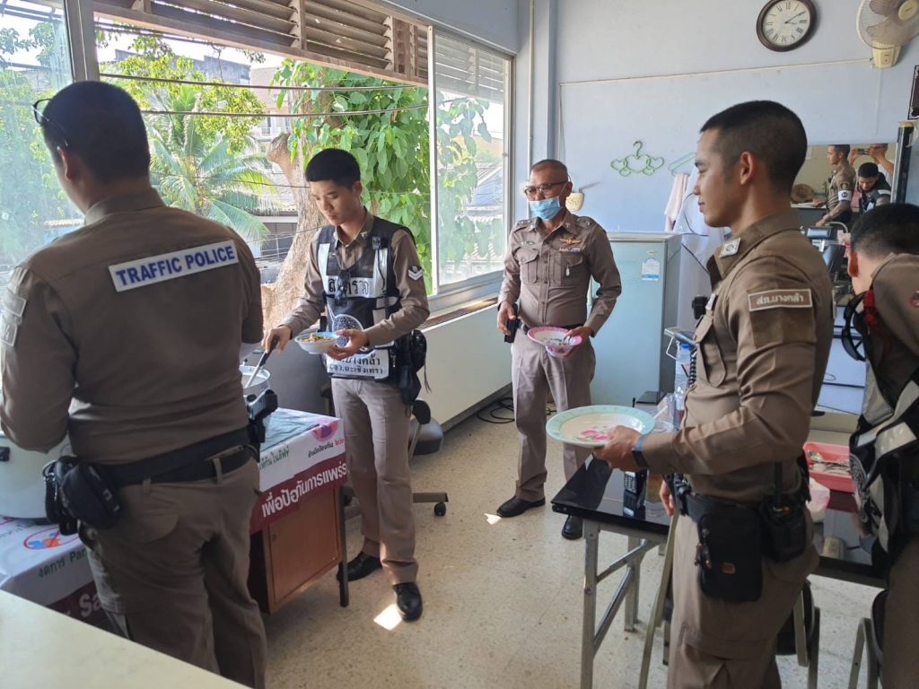 ในวันนี้ ได้รับการสนับสนุนทอดมันปลากราย จากนายเพ็ชรัตน์ พวงเจริญ ที่ปรึกษา กต.ตร.สภ.บางคล้า และ เนื้อหมูสด จาก บริษัท บางคล้าพัฒนา จำกัด (โรงหมูบางคล้า) โดยมีแม่บ้านสายลม เป็นผู้ประกอบอาหารประจำวันนี้ ได้แก่.- เกงหมู+ ทอดมันปลากรายมีข้าราชการตำรวจที่ปฏิบัติหน้าที่ ประจำสถานีและนอกสถานี ในสังกัด สภ.บางคล้า ร่วมรับประทานอาหารกลางวัน ตามโครงการฯ โดยพร้อมเพรียงกัน