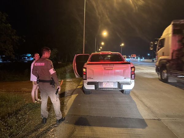สายตรวจจราจรสี่แยกบางคล้า ให้การช่วยเหลือ รถยนต์ยางแตก