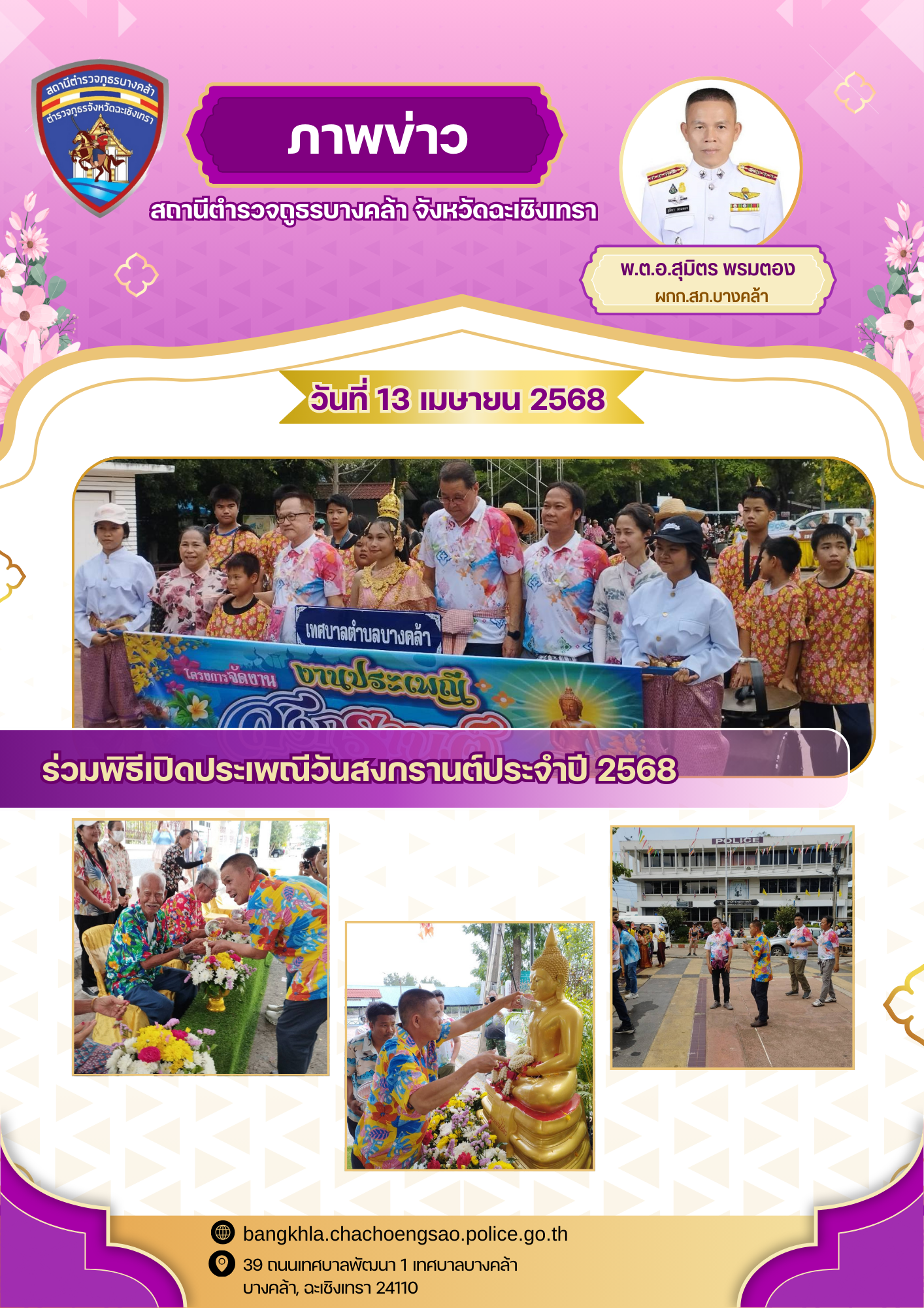 วันนี้ (วันที่ 13 เมษายน พ.ศ 2568) เวลา 16.00 น พ.ต.อ.สุมิตร พรมตอง ผกก.สภ.บางคล้า ร่วมเป