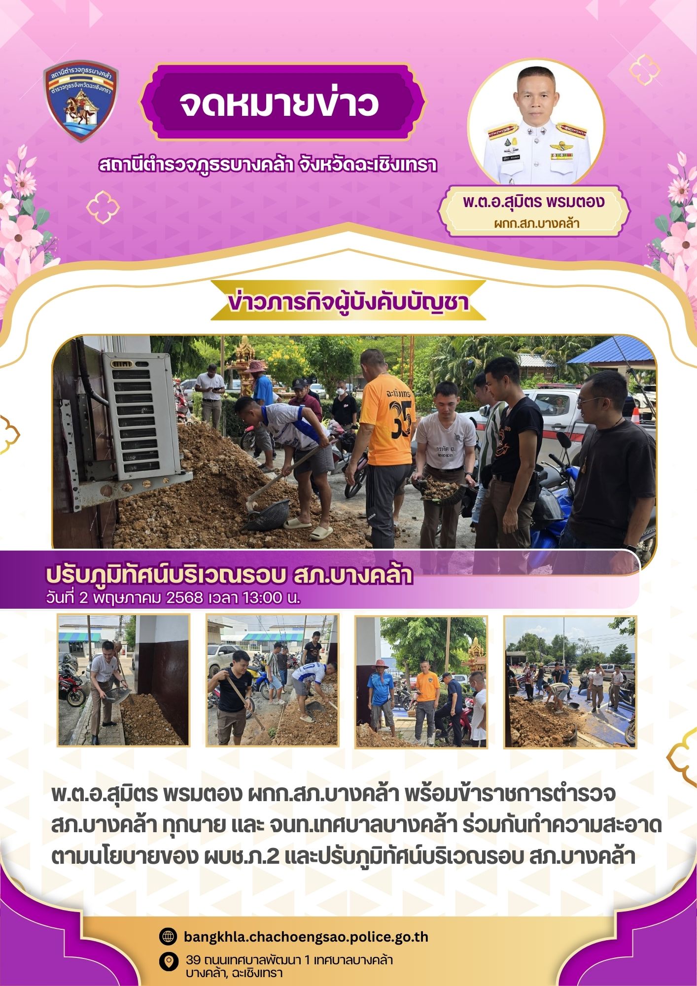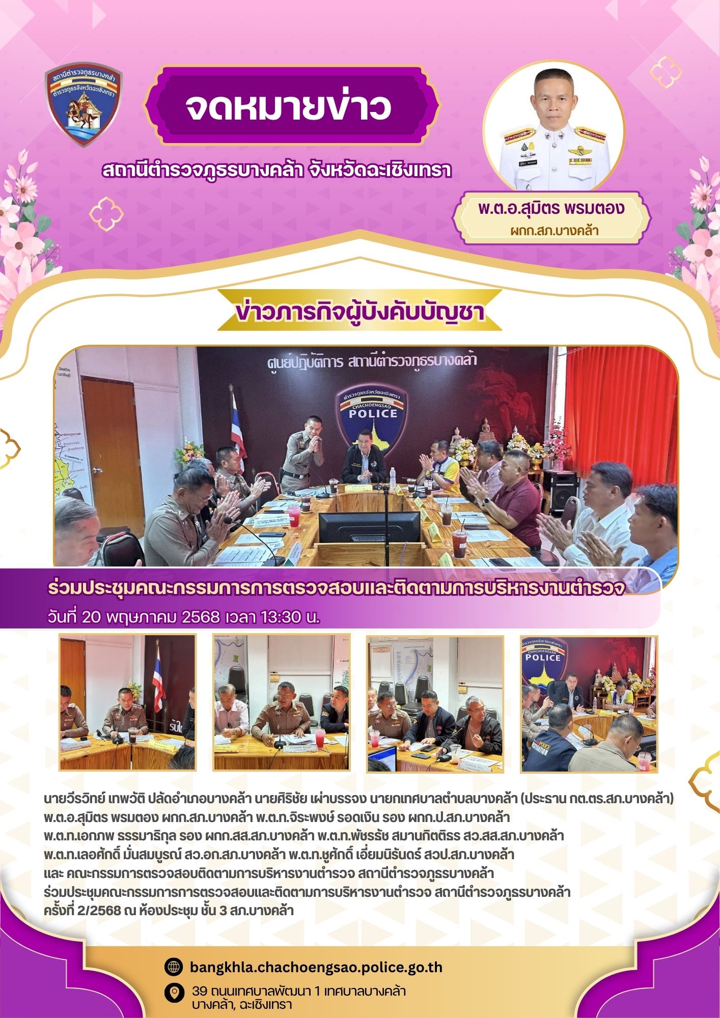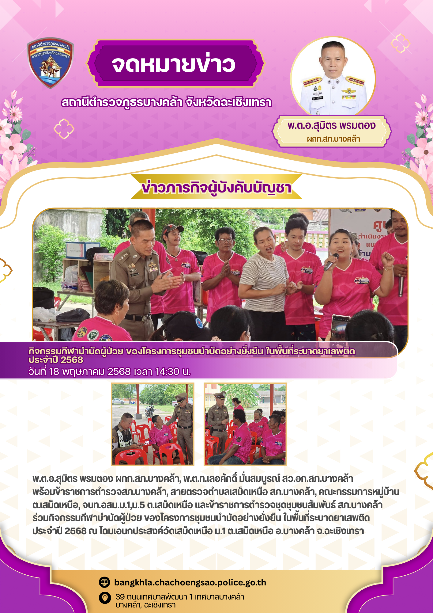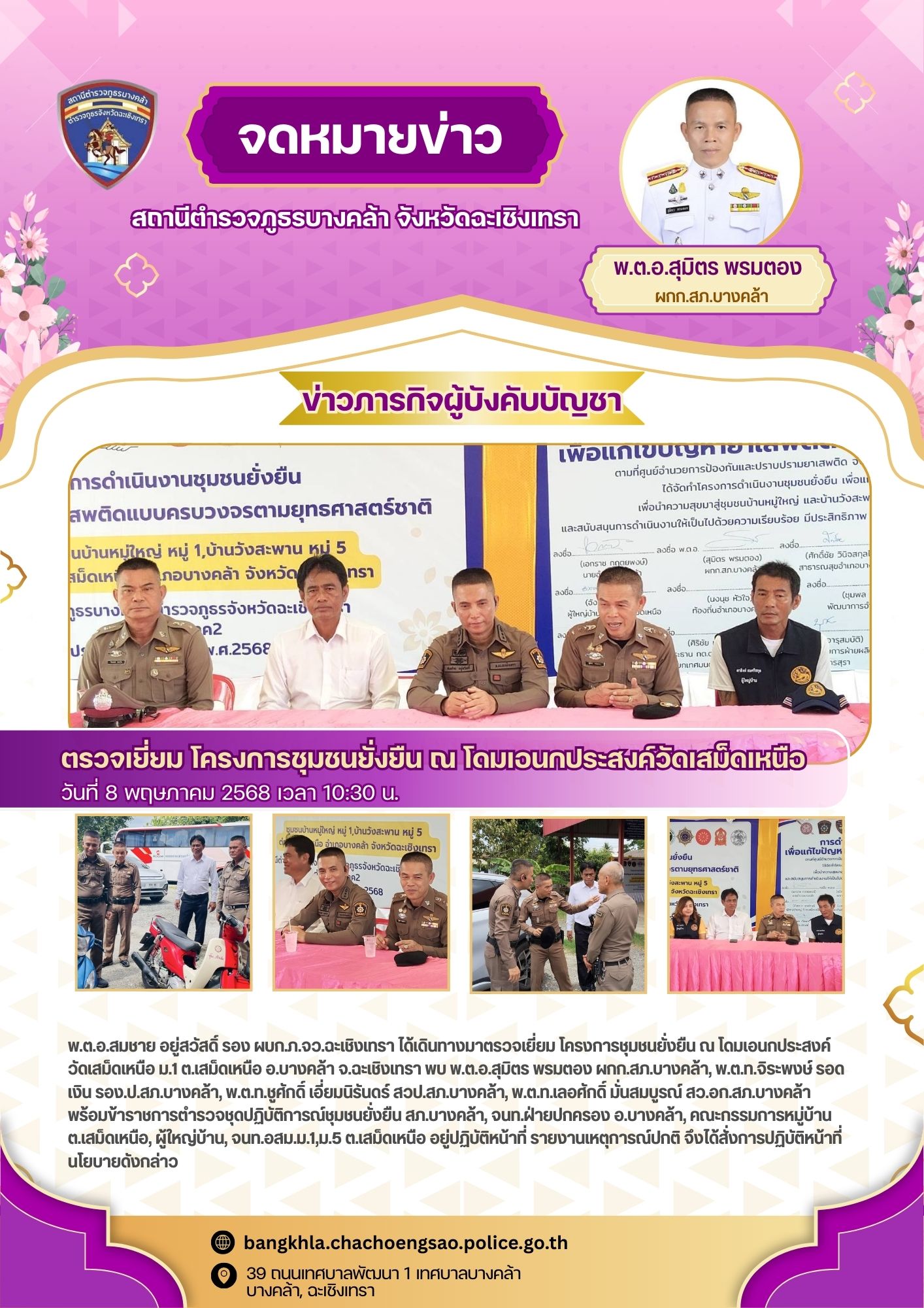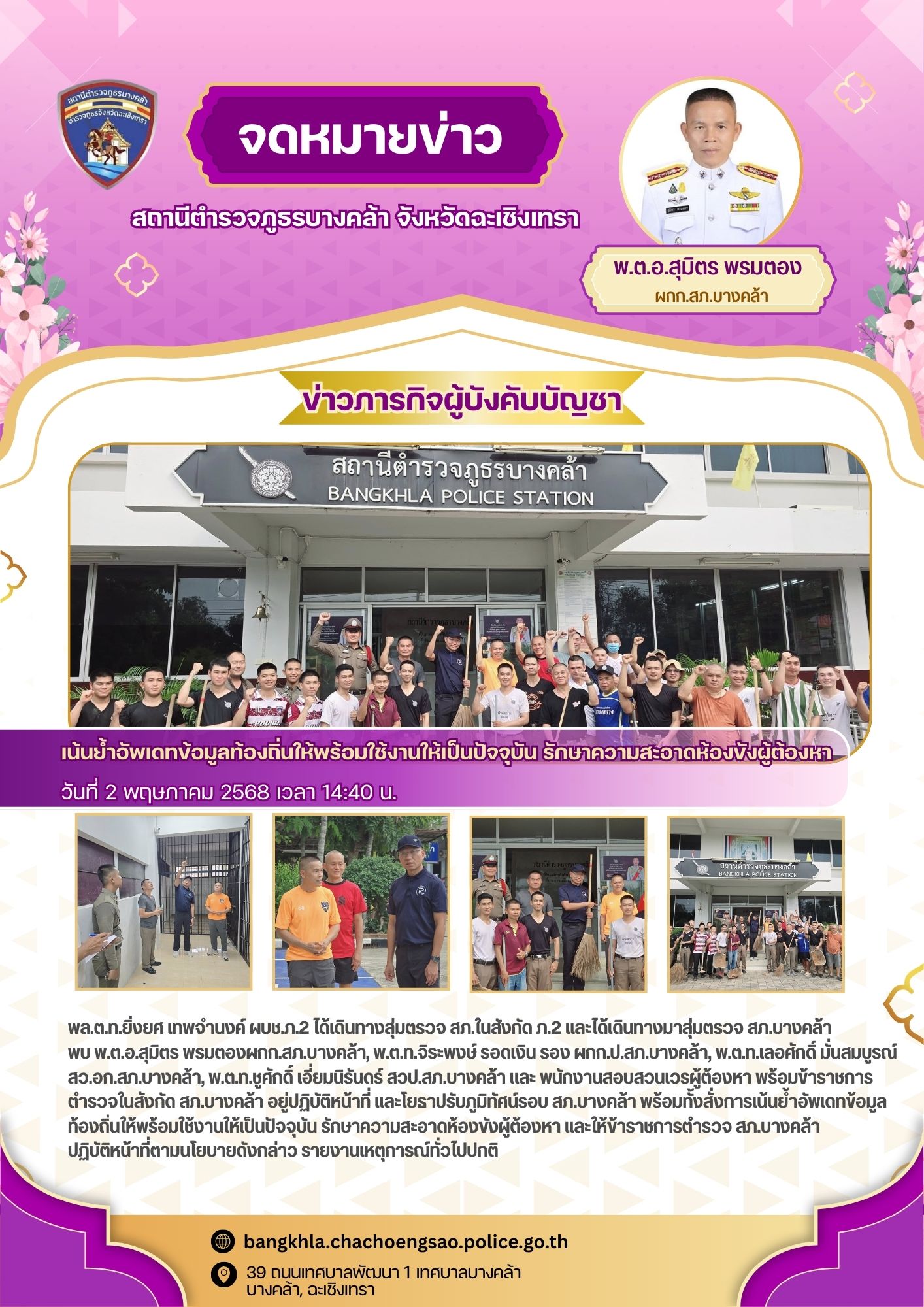 วันนี้ 18 พ.ค. 2568 เวลา 14.30 น. – พ.ต.อ.สุมิตร พรมตอง ผกก.สภ.บางคล้า, – พ.ต.ท.เลอศักดิ