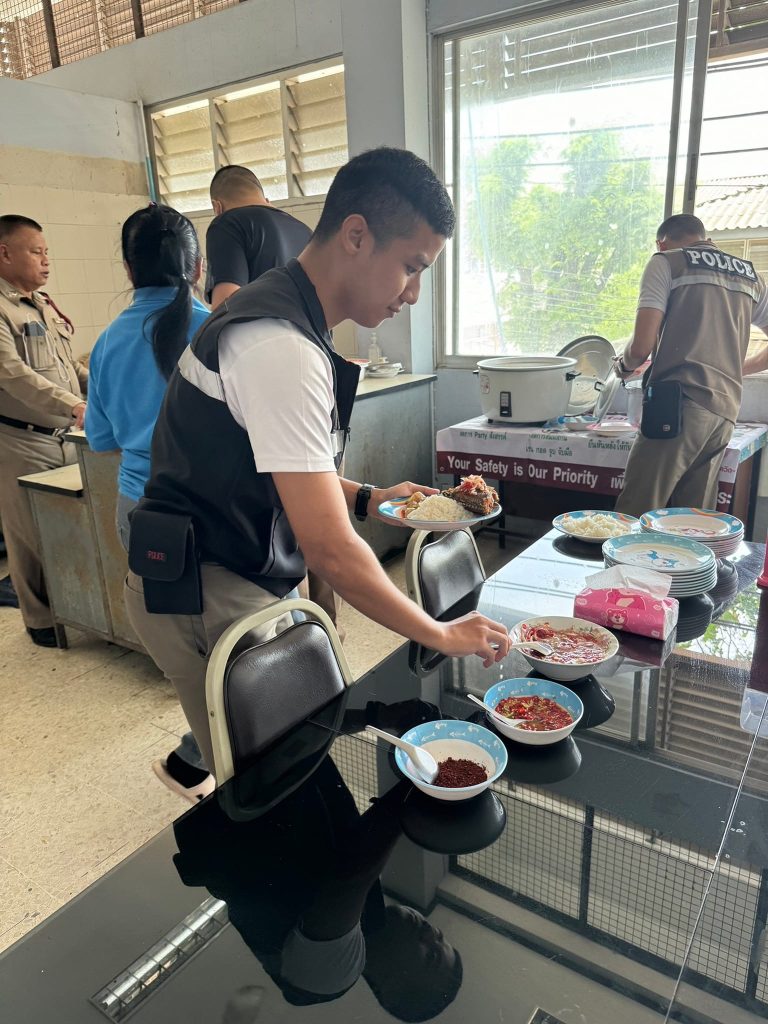 วันนี้ (10 พ.ย.66) เวลา 12.00 น. พ.ต.อ.พรชัย กิตติชญาน์ธร ผกก.สภ.บางคล้า ได้จัดโครงการสวัสดิการอาหารกลางวันแก่ข้าราชการตำรวจในสังกัดสถานีตำรวจภูธรบางคล้า เพื่อเสริมสร้างความสามัคคี บำรุงขวัญกำลังใจ และพัฒนาคุณภาพชีวิต เป็นสวัสดิการ ลดค่าใช้จ่าย ของข้าราชการตำรวจ โดยจัดโครงการในทุกวันจันทร์-พุธ-ศุกร์ ของสัปดาห์ ณ ห้องอาหาร ชั้นลอย ของ สภ.บางคล้า ในวันนี้ ได้รับการสนับสนุนปลานิล จากนายเพ็ชรัตน์ พวงเจริญ เจ้าของแพปลาเพ็ชรัตน์ เป็นวัตถุดิบ โดยมี แม่บ้านสายลม เป็นผู้ประกอบอาหาร ประจำวันนี้ ได้แก่.- ปลาร้าทรงเครื่อง + ปลานิลทอด โดยมีข้าราชการตำรวจที่ปฏิบัติหน้าที่ ประจำสถานีและนอกสถานี ในสังกัด สภ.บางคล้า ร่วมรับประทานอาหารกลางวัน ตามโครงการฯ โดยพร้อมเพรียงกัน