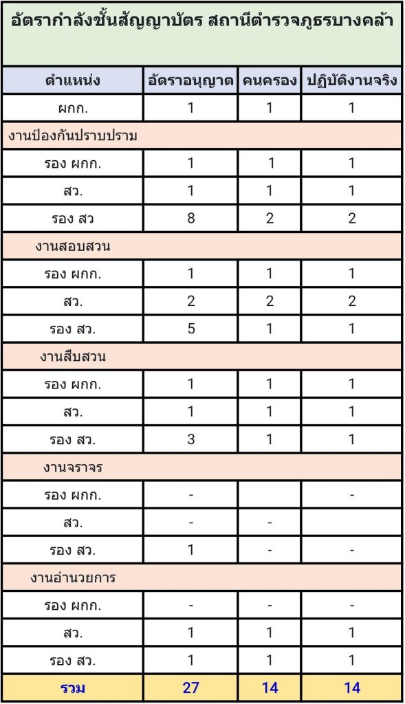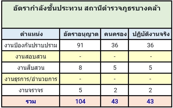 อัตรากำลังของสถานีตำรวจภูธรบางคล้า