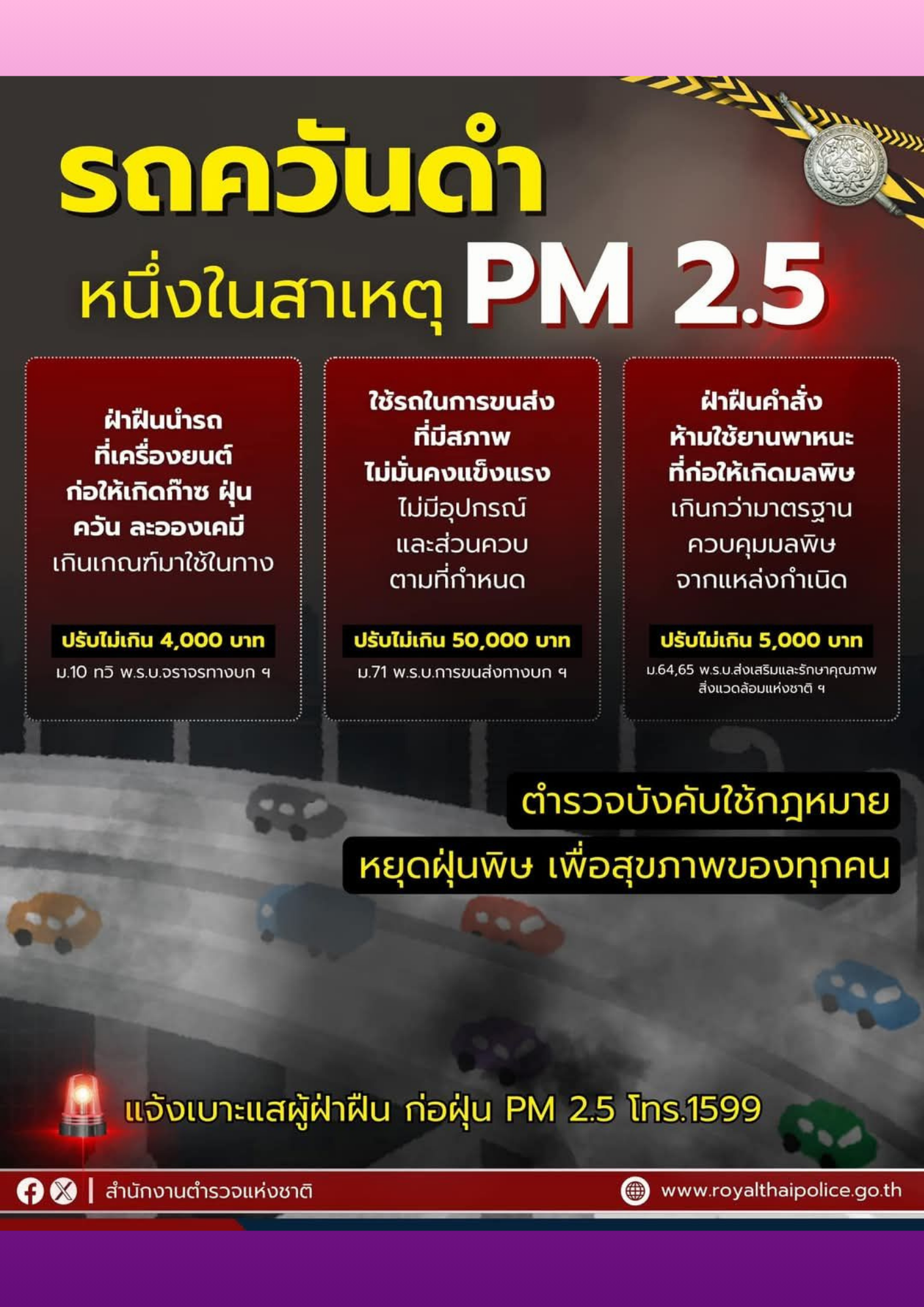 หยุดรถควันดำ หยุด ฝุ่นPM2.5รถควันดำ หนึ่งในสาเหตุเพิ่มฝุ่นละอองขนาดเล็ก PM 2.5ตำรวจบังคับใช้กฎหมาย #