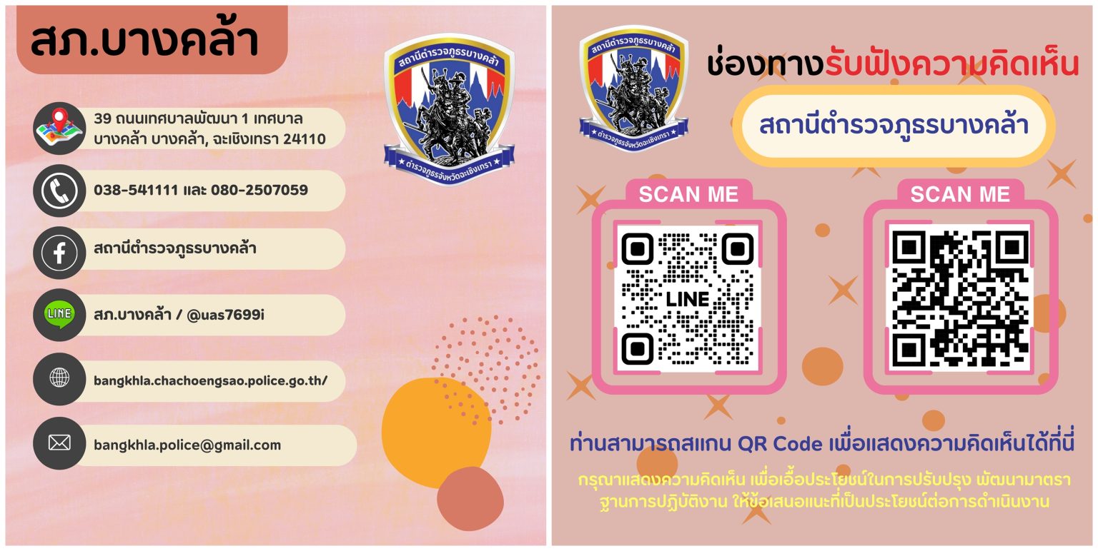 ช่องทางการถาม - ตอบ / รับฟังความคิดเห็น ของสถานีตำรวจภูธรบางคล้า